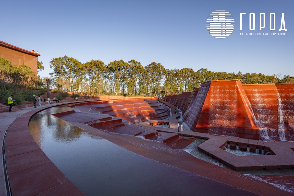 В парке «Краснодар» открыли новую локацию Парка Облаков – амфитеатр воды творения Сергея Галицкого, похожий на каньон.
