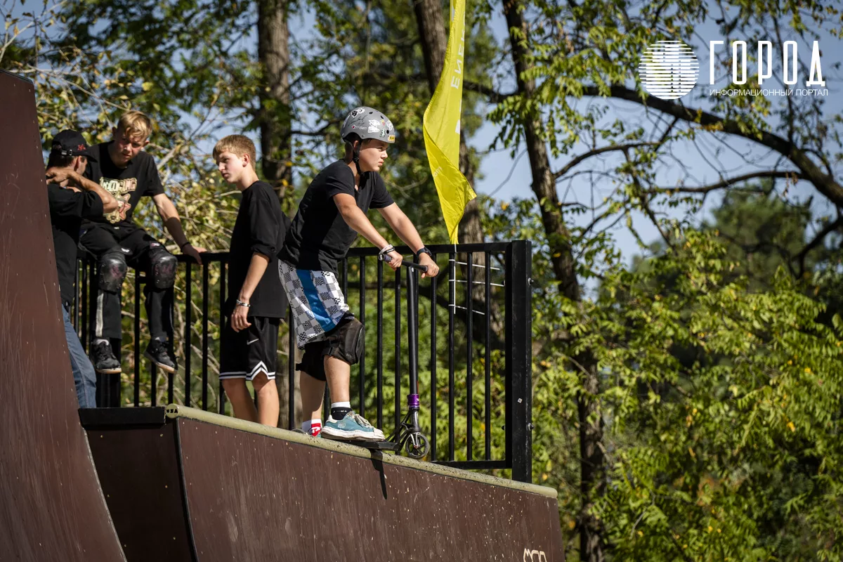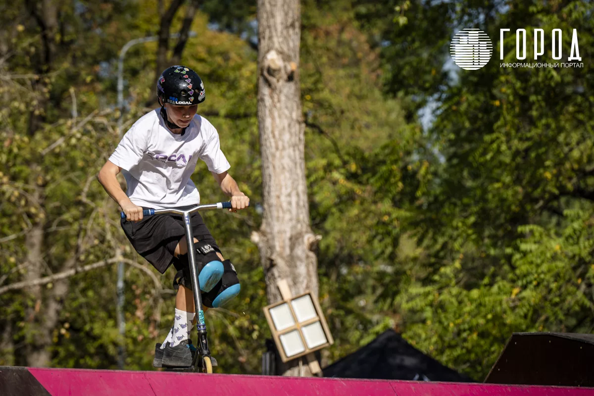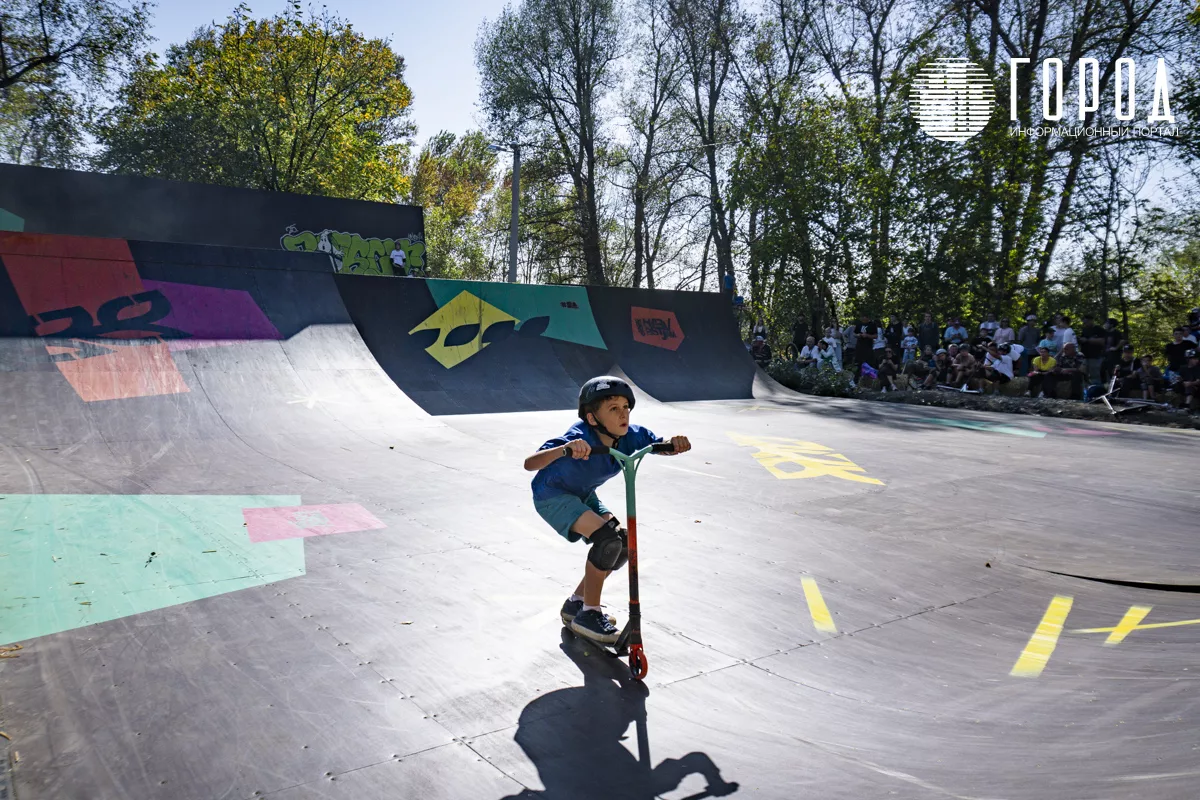 В субботу десятки мальчишек на самокатах показали своё мастерство в скейтпарке на Затоне Краснодара