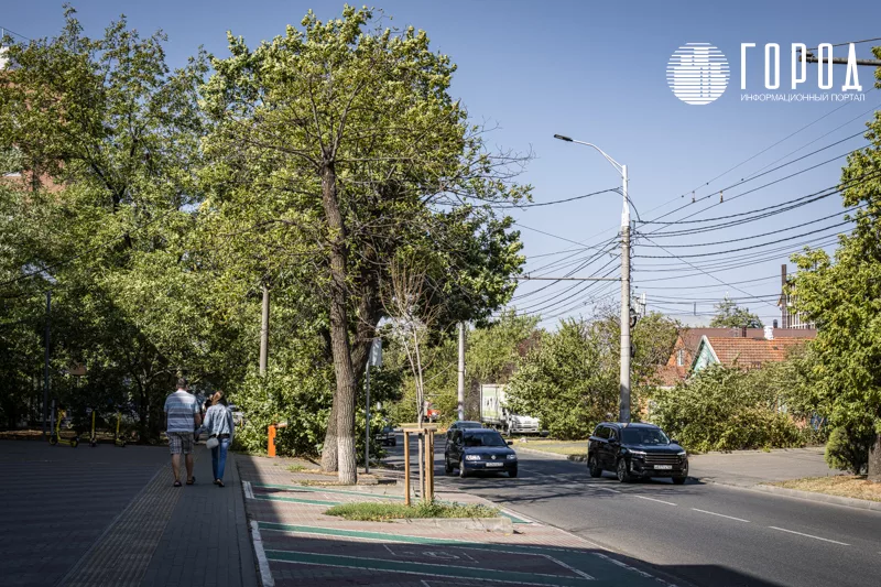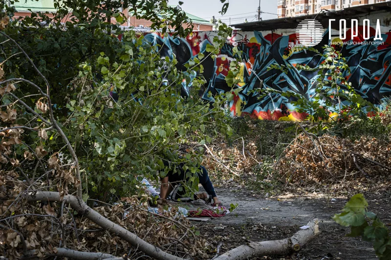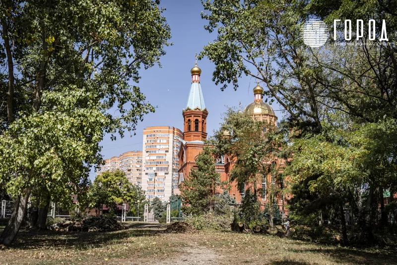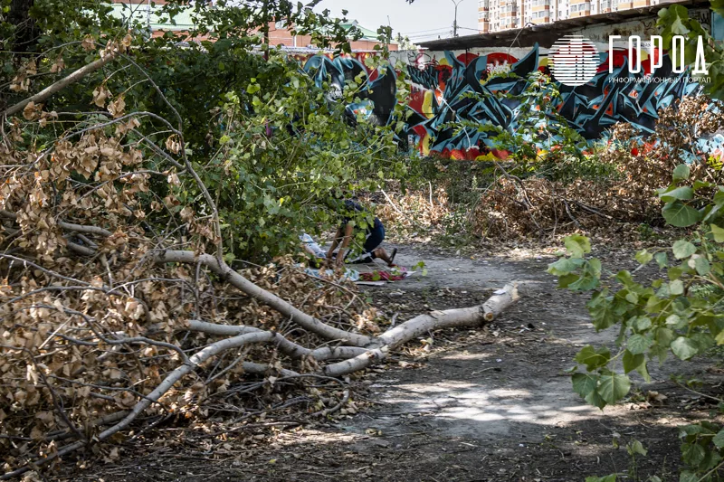 Местами лежат поваленные деревья, а маргиналы облюбовали участок между Рождественским храмом и академией ФК «Краснодар».