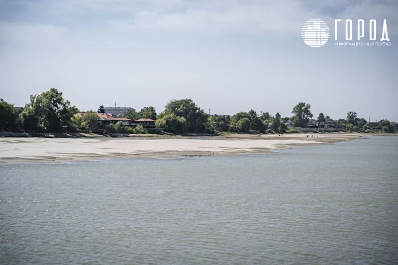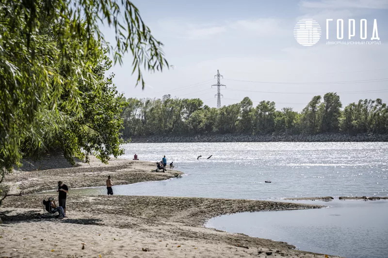 Обмелевшая Кубань раскрыла удивительно прекрасные песчаные пляжи, на которых отдыхают по выходным семьями жители микрорайона.