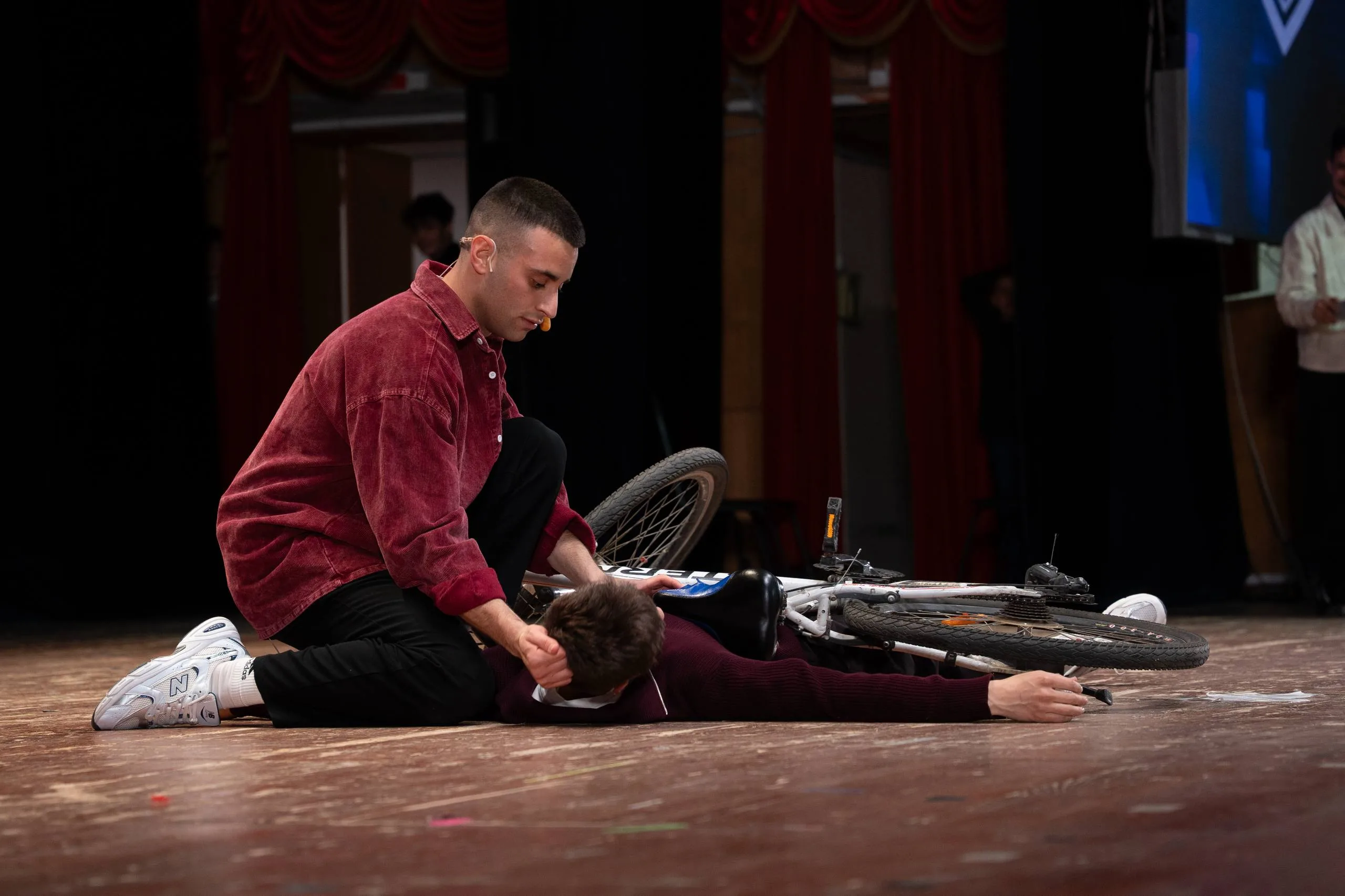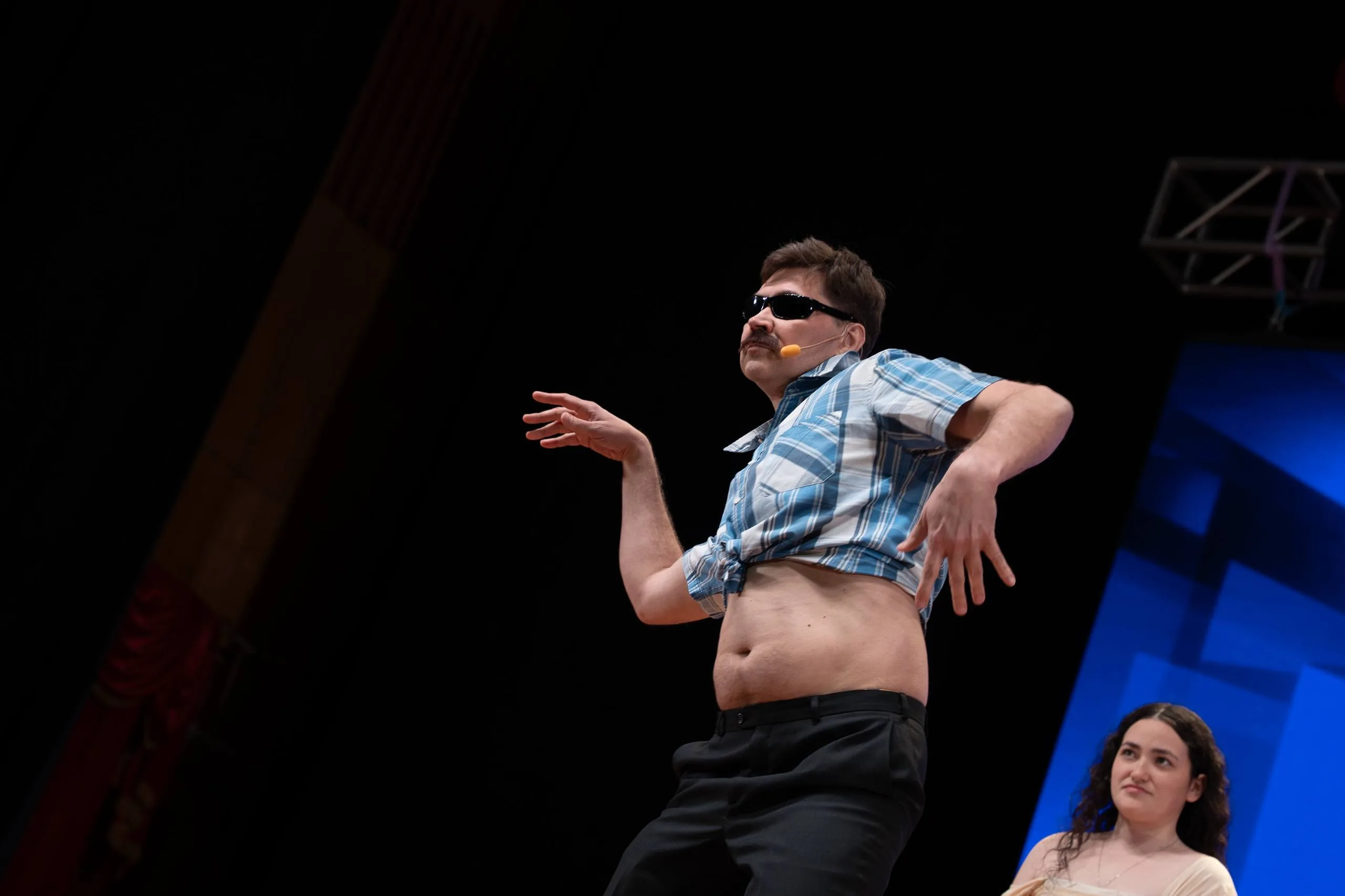Несколько интересных номеров показал «Дождь» из Астрахани. Например, пародию на бывшего президента РФ Бориса Ельцина. Который советовал «забивать» на любую критику, как делал в свои годы он сам. А ушёл он со сцены в «Красное и Белое» — «дособирать флаг России».