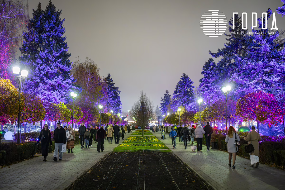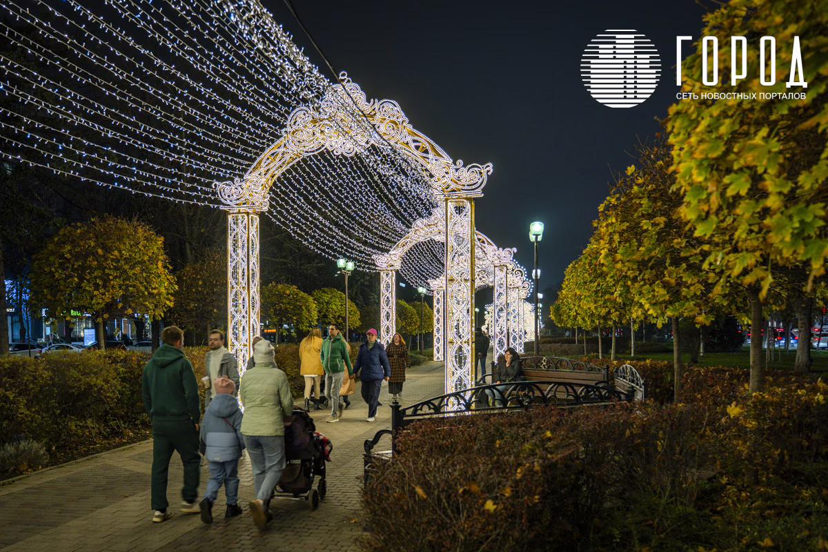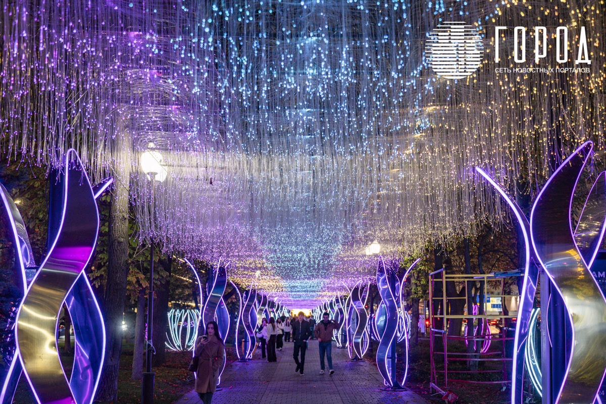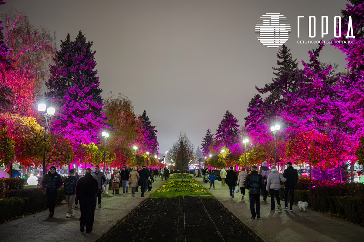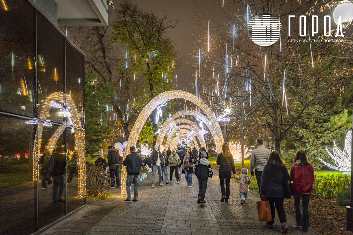 Так, фигуры светящихся медведей, оленей, зайцев, лисиц и других животных собрали на газонах более компактно. Они сейчас не являются дополнением к ярким аркам, а создают самостоятельно в совокупности отдельную локацию. Более масштабным сделали и освещение всего бульвара. На газонах установили прожекторы, которые своим светом окрашивают деревья и газоны в разные цвета радуги. От красного – до зелёного и жёлтого.