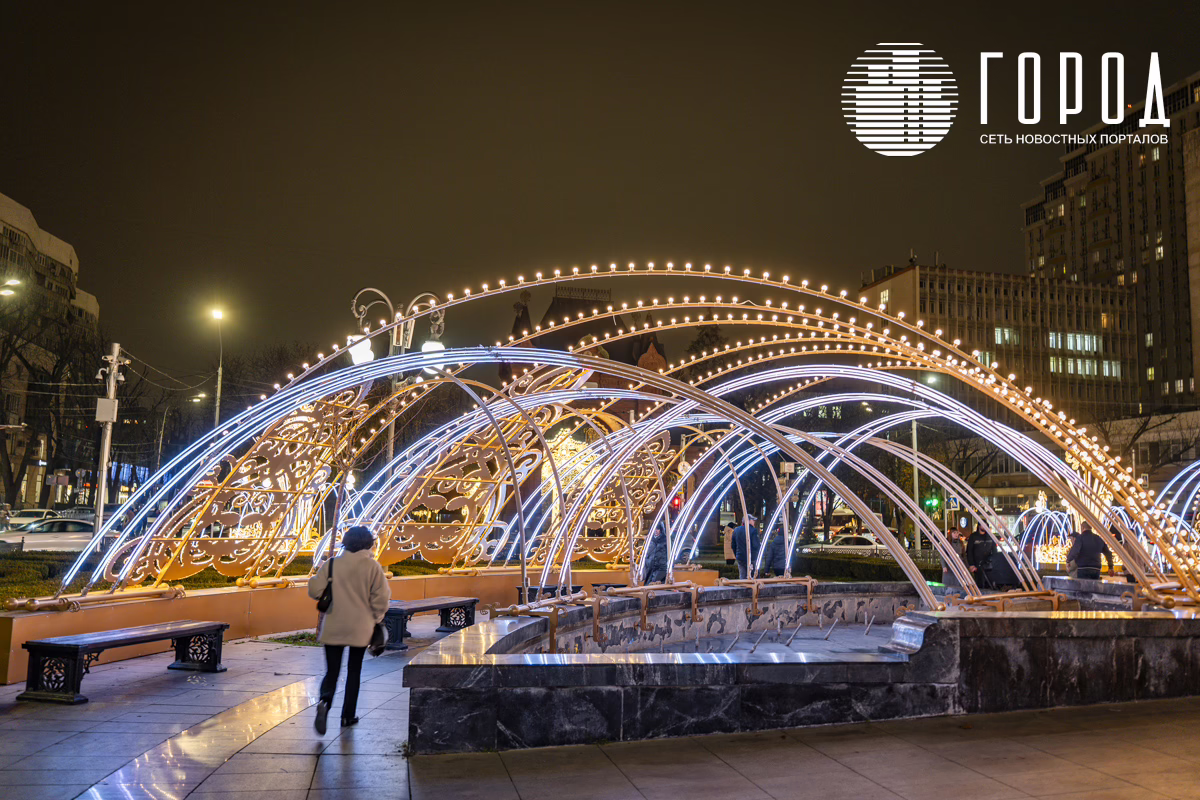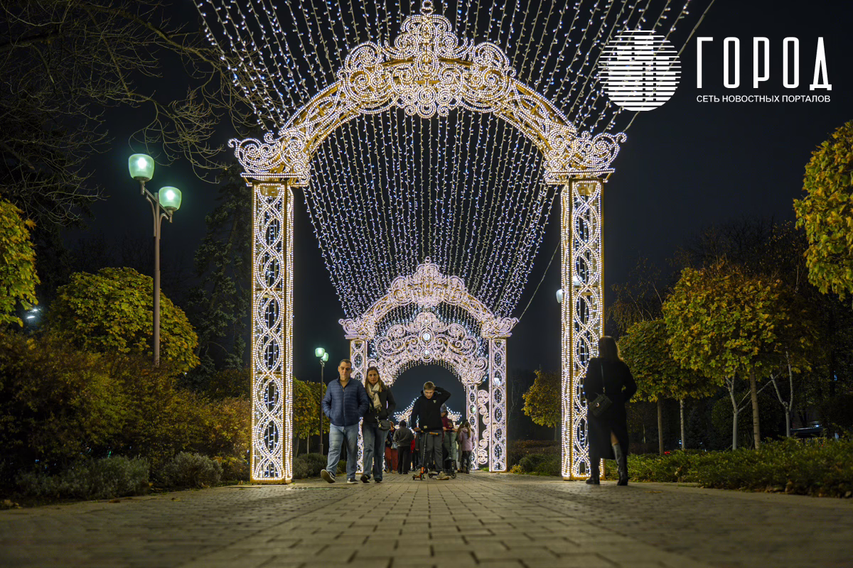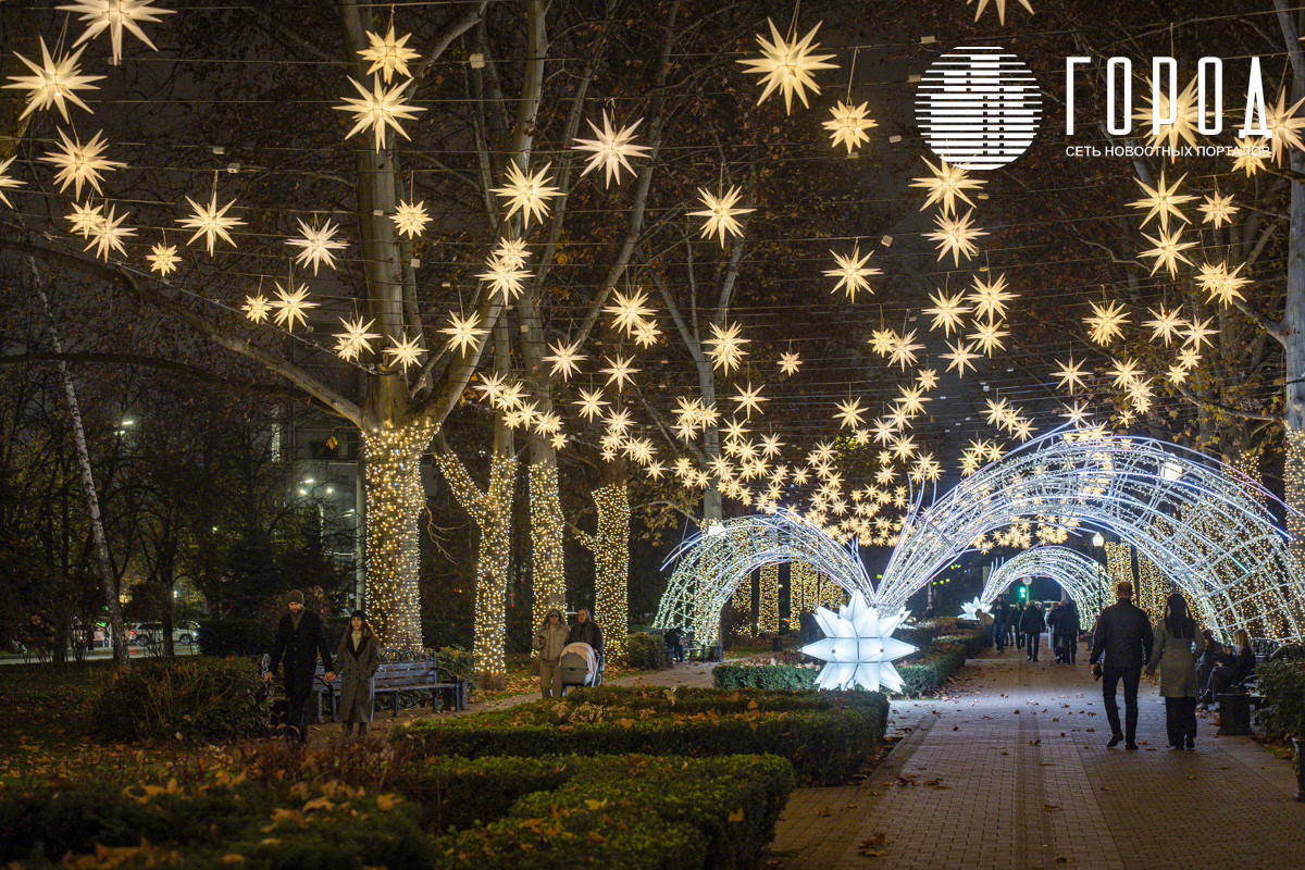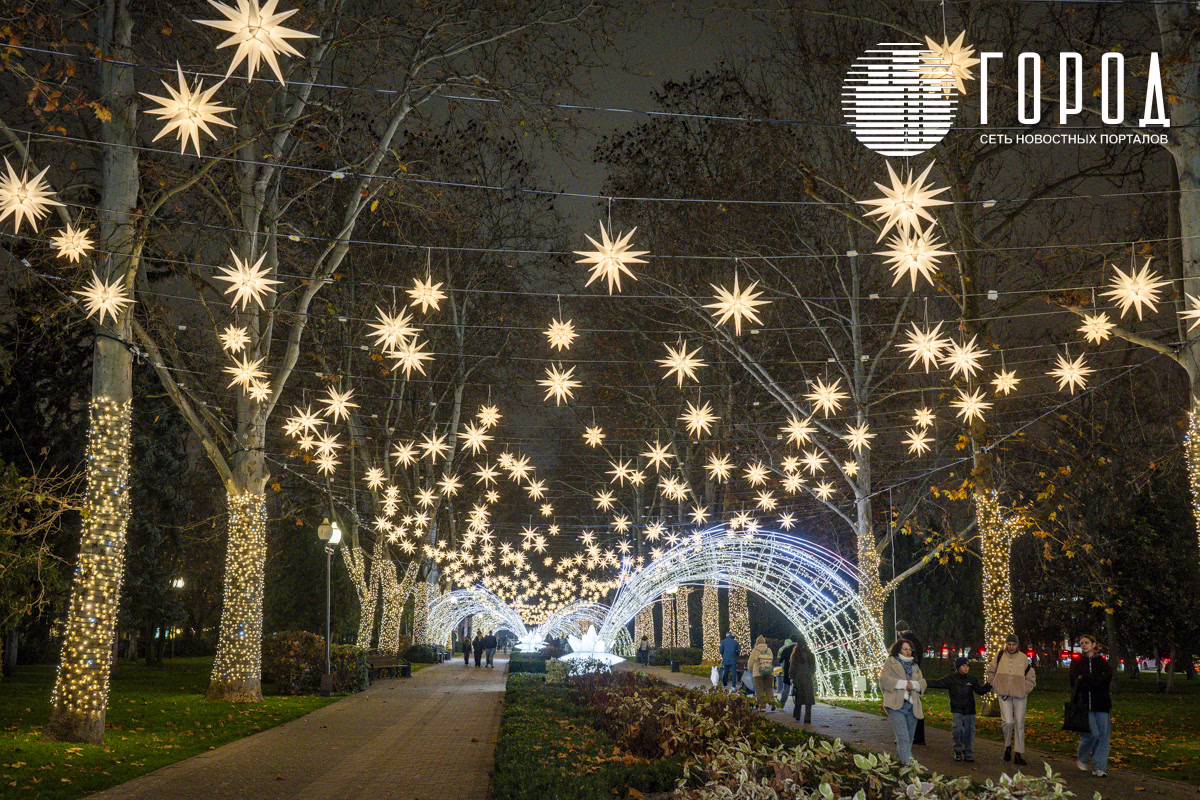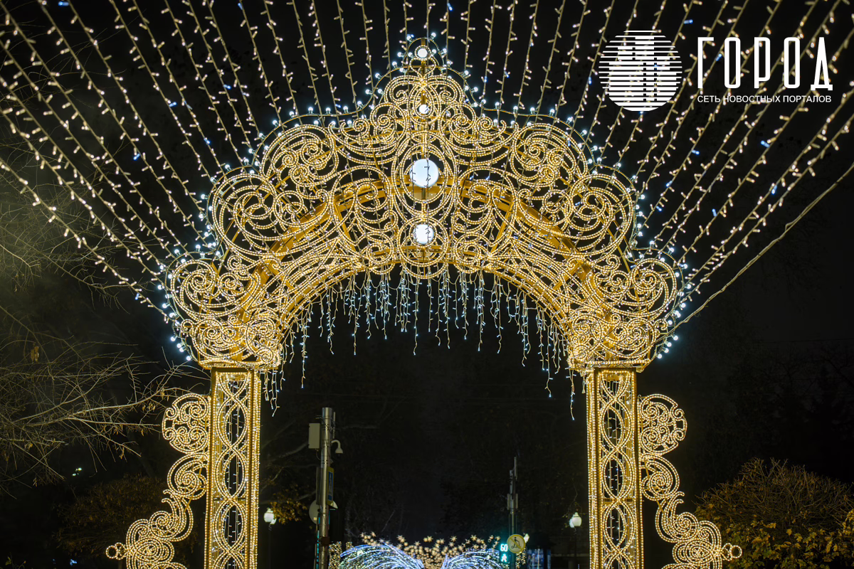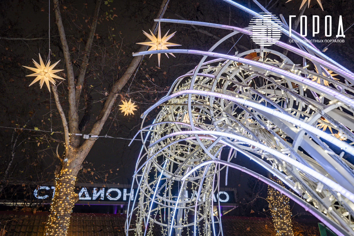 С воскресенья улица Красная на Александровском бульваре второй год подряд засияла яркими огнями. Аллеи самых разнообразных по форме и переливу цветов арок. Поля с фигурами светящихся животных. Огромные стрекозы и совы на них и деревьях. Сотни тысяч горящих отовсюду лампочек. Две новогодние ёлки – одна над памятником Шурику и Лидочке, а вторая из огромных шаров. Переливающийся дождик повсюду, как и звёзды, снежинки, раскрывающиеся лотосы…