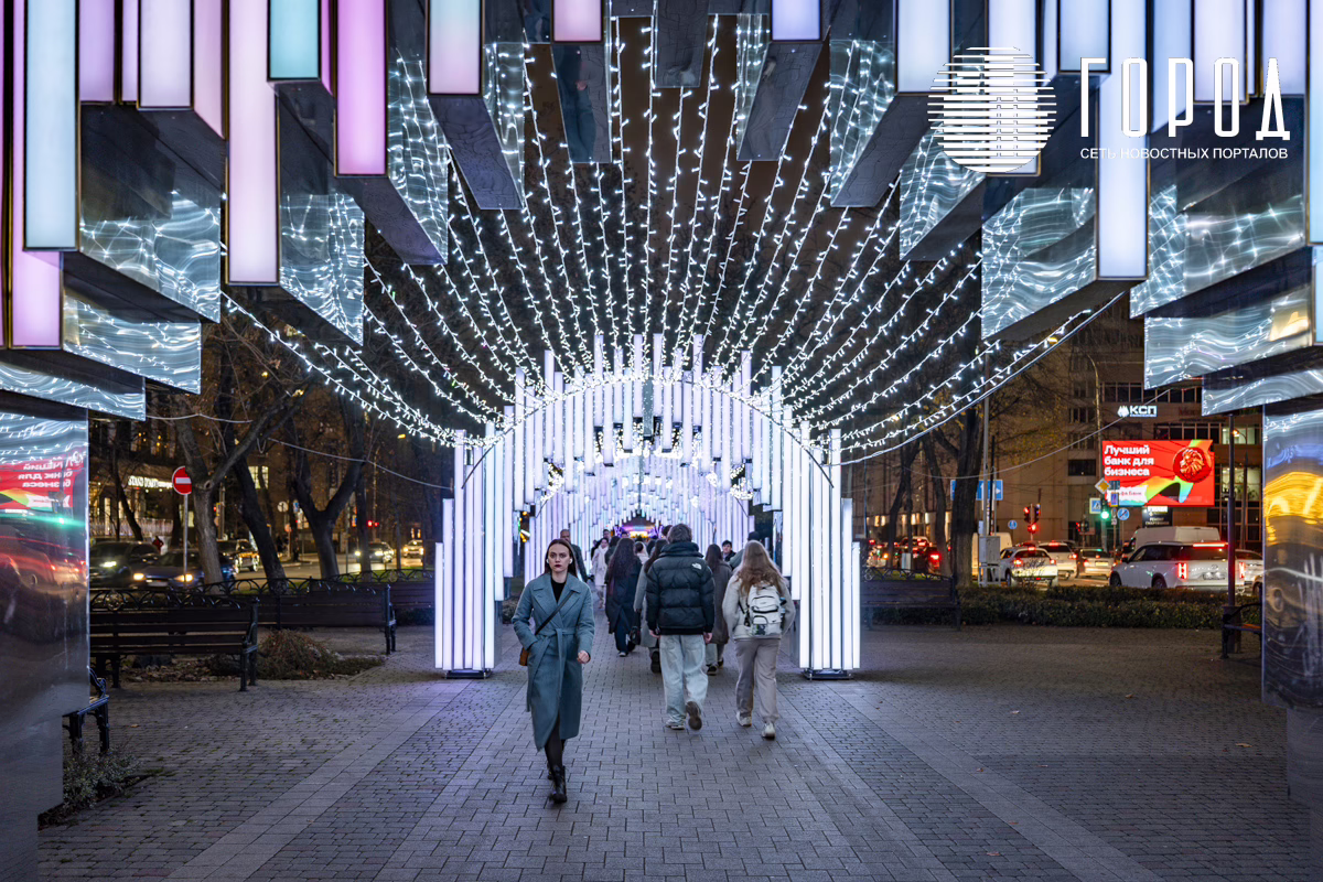 В центре Краснодара новогодняя улица Красная засияла по-новому в этом году, во второй раз благодаря Сергею Галицкому