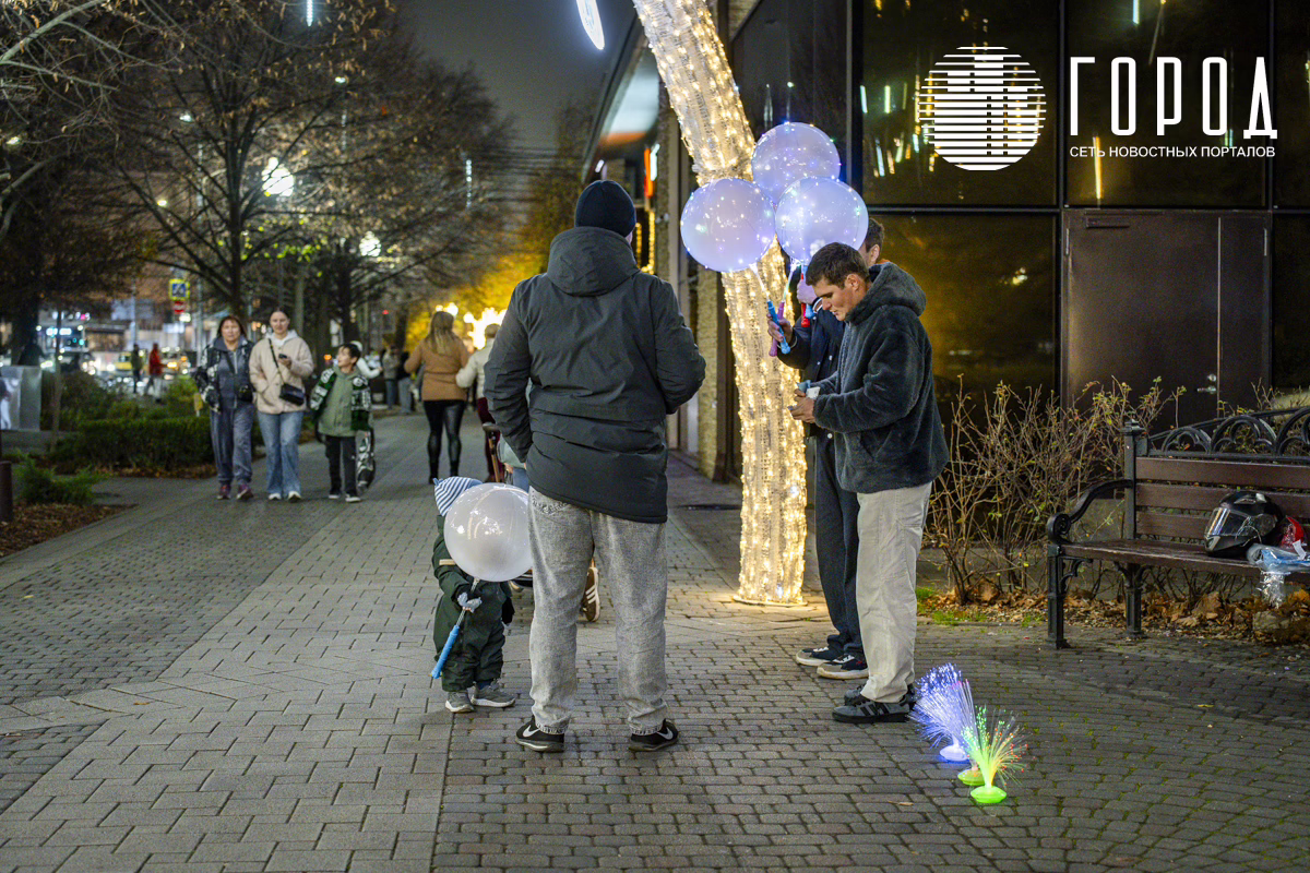 Прошло всего несколько дней с открытия украшенной улицы Красной, как её облюбовали желающие заработать краснодарцы. Одни вместе с детьми торгуют светящимися шариками и игрушками. Другие – просят милостыню. Самые активные третьи – краснодарцы облачились в костюмы зебры и ослика, предлагая сфотографироваться всем желающим. Дежурят «животные» у двух ёлок. После несколько шуток и красивых фото с краснодарцев требуют оплаты за фото с «осликом». Конфликтов по этому поводу пока не наблюдали.