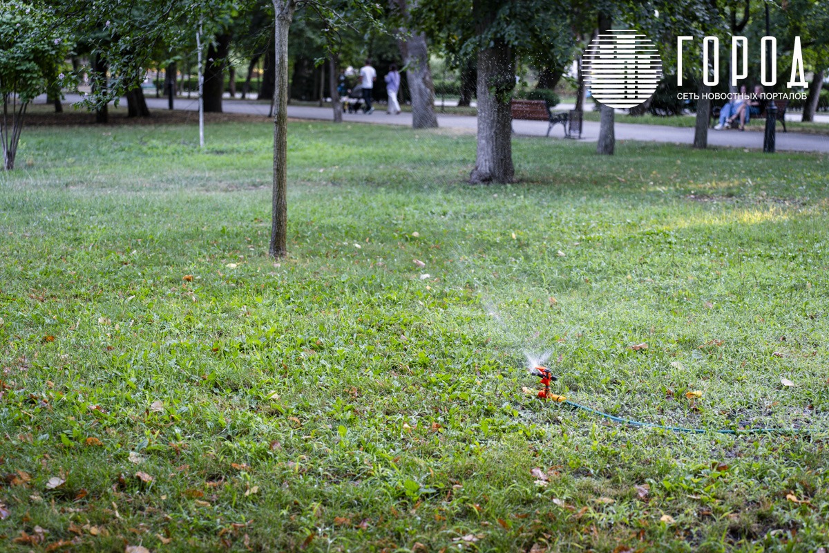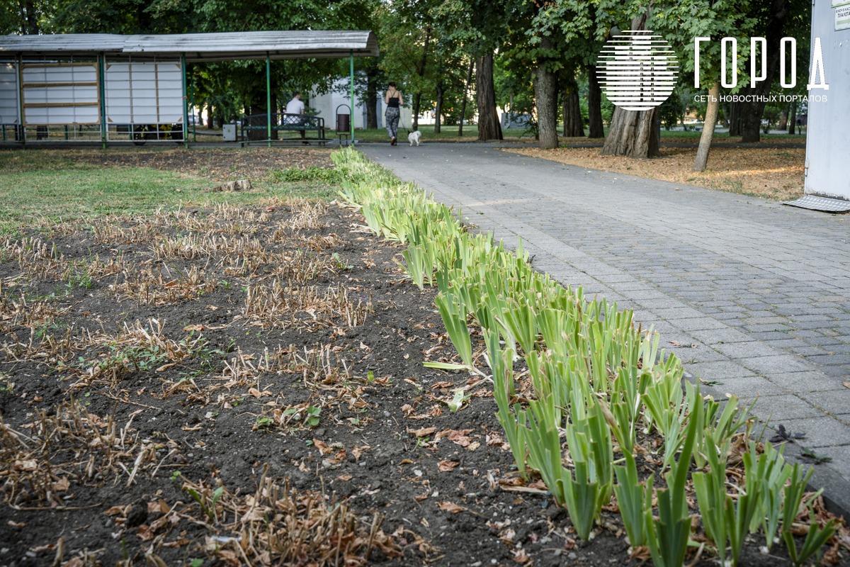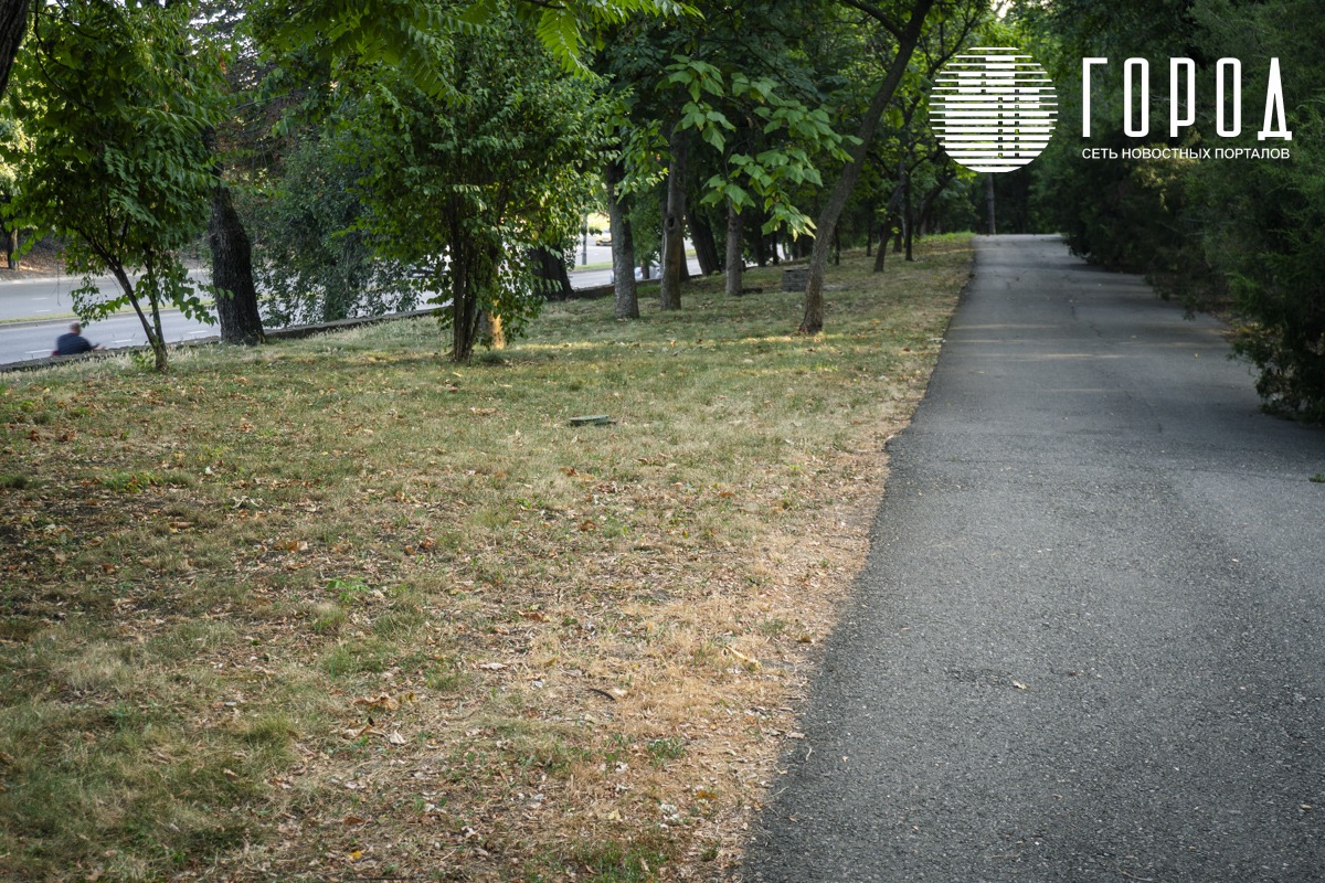 Городской сад в плане озеленения делится на две части. Первая находится вдоль двух-трёх главных аллей. Редкие поливочные водопроводы кое-как работают. Но покосом травы никто не занимается. Большая часть парка – выжженная земля. Здесь растения и деревья давно не видели влаги на фоне сильной жары.