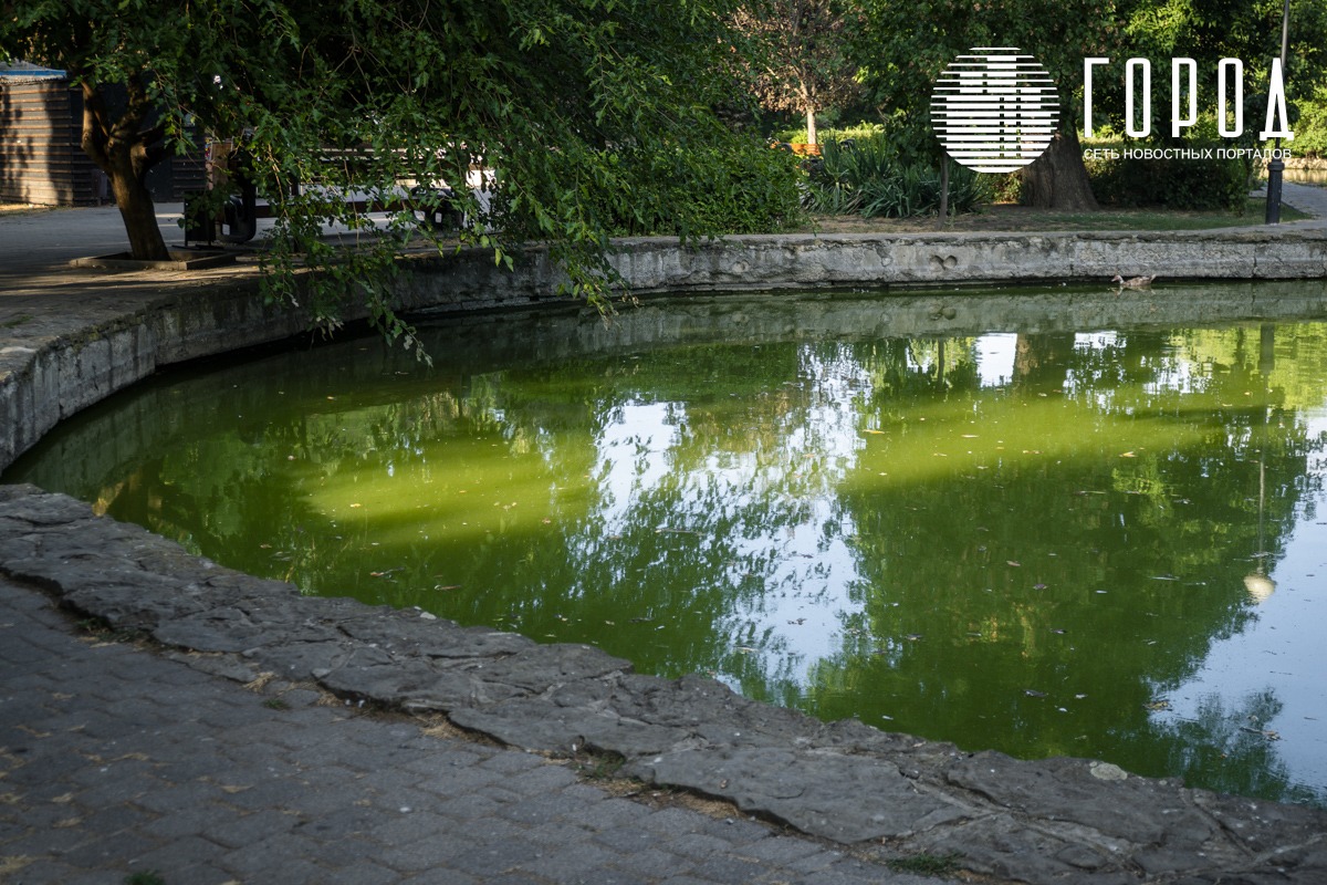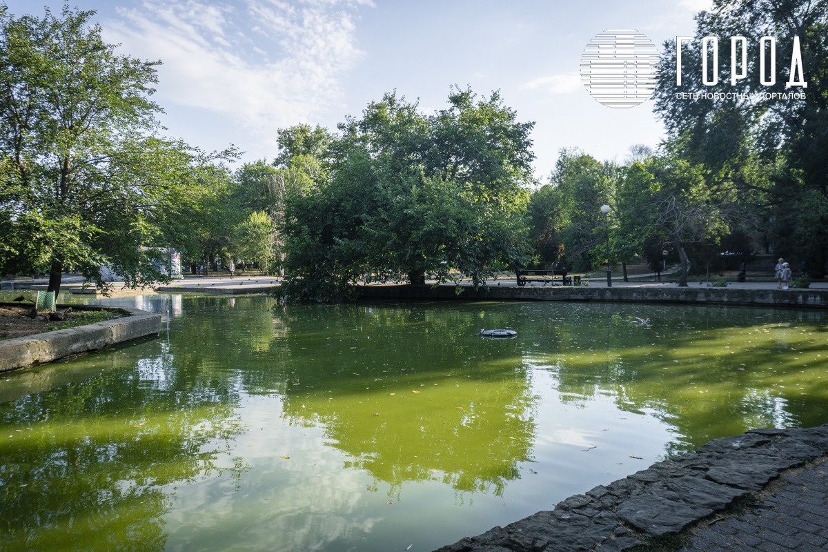 К 6 августа старейший парк Краснодара – Городской парк разрушается, деревья и цветы засыхают, пруд с птицами замусорен.