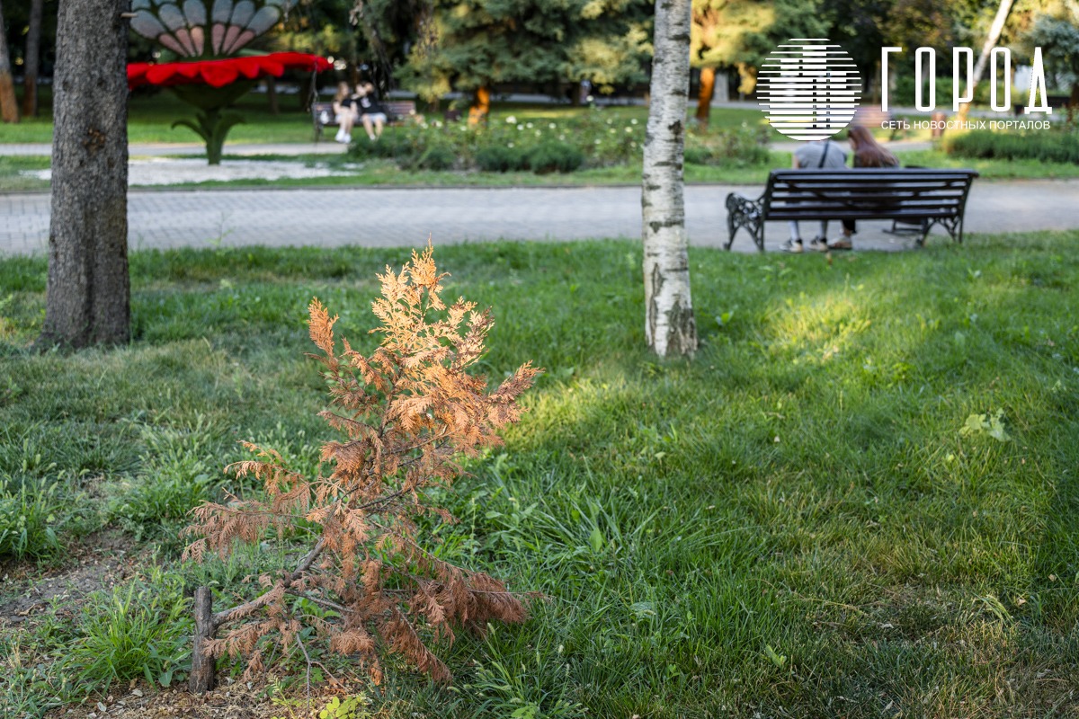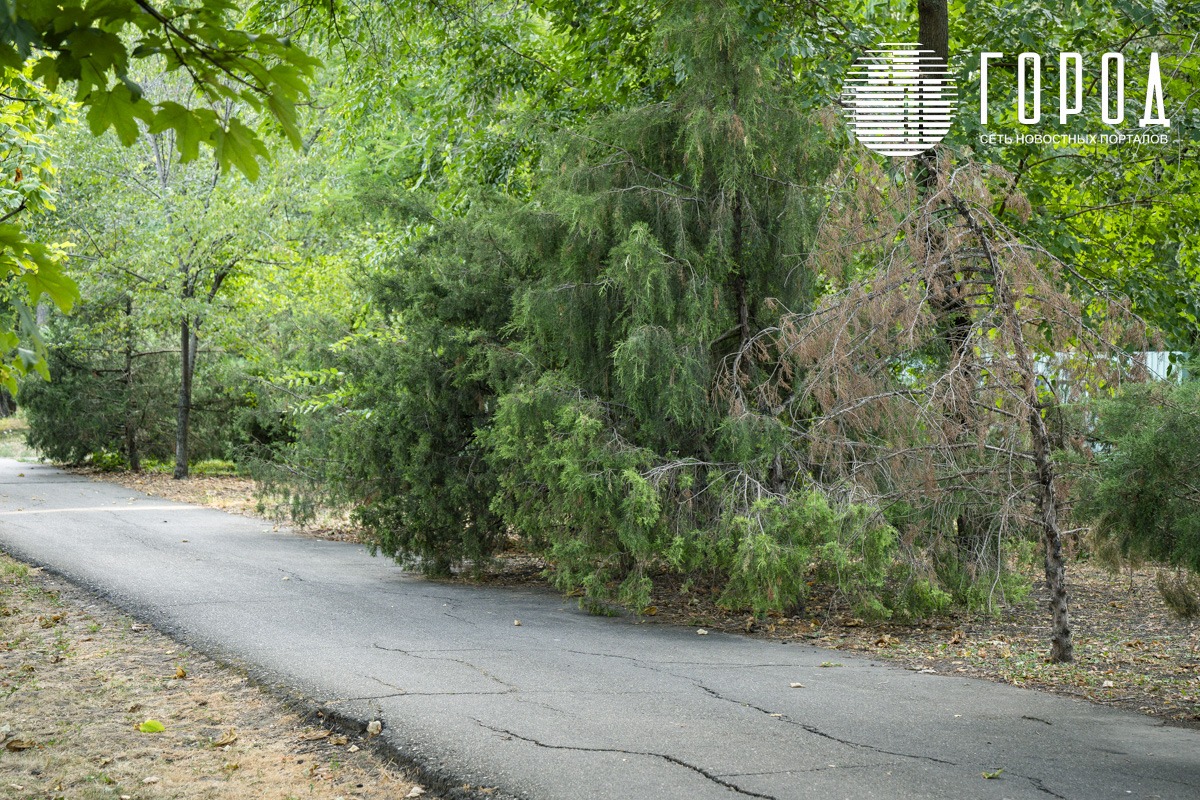 Местами земля потрескалась, как дно периодически пересыхающего водохранилища. Погибли цветы и многие деревья. Хвойные, берёзки и другие. Их никто не спасал. Городской сад знаменит четырьмя вековыми дубами – памятниками природы. Два из них также умирает без должного ухода. Пейзажи выжженной земли представляют и угрозу – случайная искра, и трава загорится.