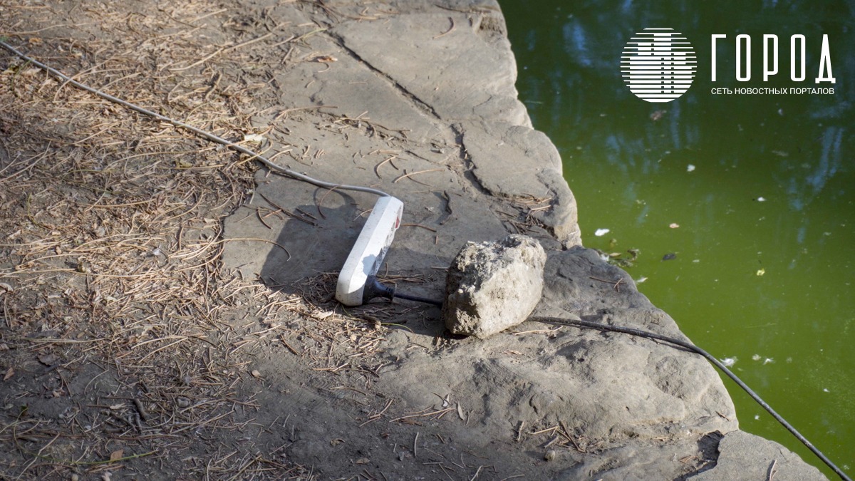 Сейчас рыбаки говорят, что с рыбой всё нормально, а вот гуси почему-то умирают. В пруду установили аэраторы для насыщения воды кислородом. Но они почему-то не работают, хотя и подключены. Сетевой фильтр с розеткой, приваленный камнем лежит в метре от воды. Представляя опасность для гуляющих рядом малышей. Дорожки вокруг пруда загажены фекалиями птиц. Их явно давно не чистили.