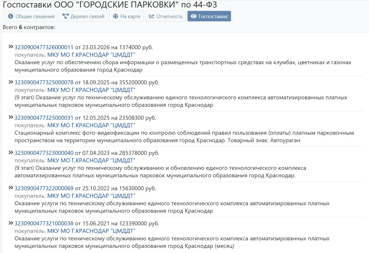 В 2025 году «Городские парковки» получили два контракта на 378 млн рублей за стационарный комплекс фотовидеофиксации по контролю оплаты парковок и услуги по техобслуживанию. Так что, если глава Краснодара Евгений Наумов только на прошлой неделе заметил, что автолюбители снимают на парковках номера с авто и не оплачивают стоянку, то надо спросить: а куда делись выделенные им миллионы на фиксацию таких случаев.