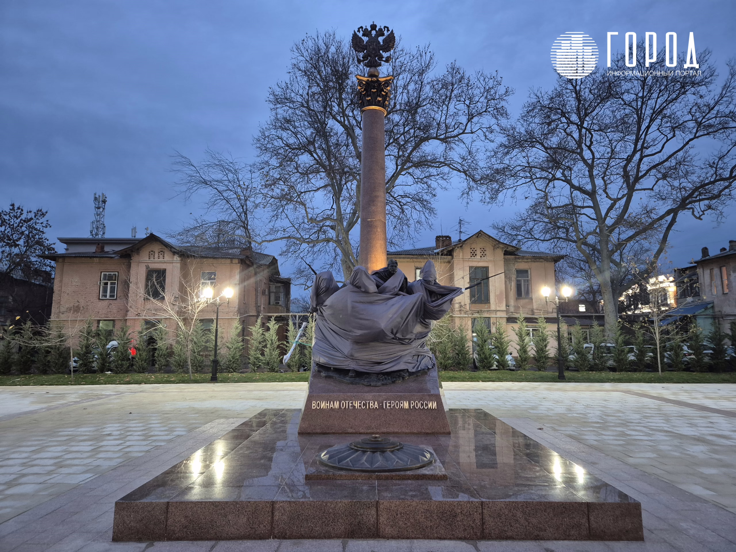 В Краснодаре к 7 декабря завершили благоустройство сквера Героев Отечества на пересечении улиц Постовая и имени Седина и установили памятник воинам разных времён.