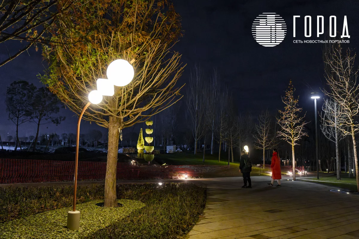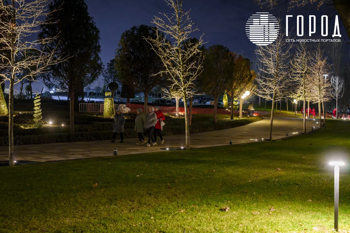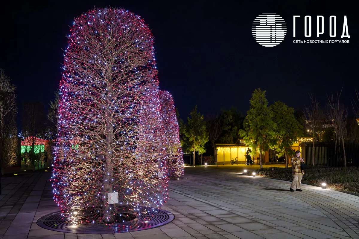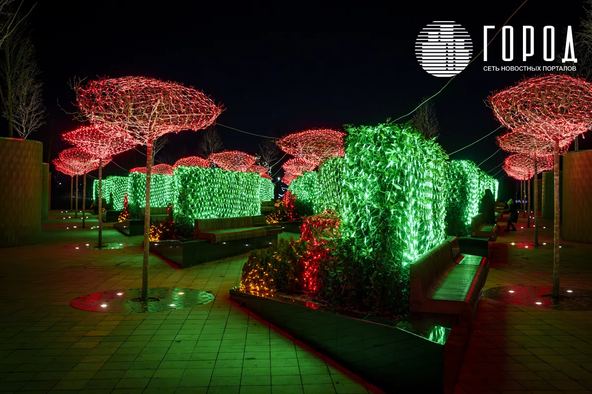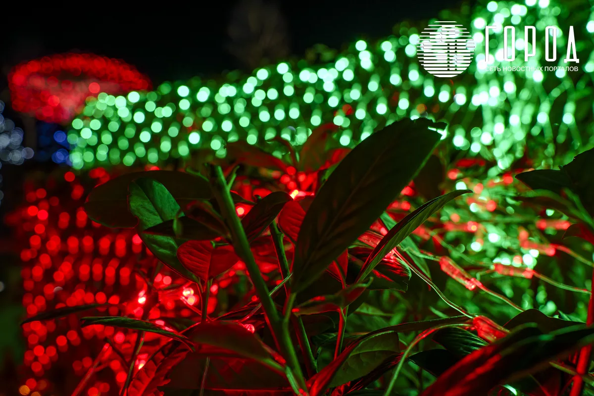 Парк Облаков украсили красивой яркой аркой, которая по стилю похожа на те, что Сергей Галицкий установил на улице Красной. В гирляндах оказались и многие деревья. Горожане и туристы идут в основном как раз к ним. Сияют разными цветами отдельные парковые элементы, пользующиеся популярностью у посетителей. Большинство людей гуляют в парке Галицкого в Парке Облаков и у украшенного входа в Японский сад. Кстати, впервые за последнее время, огромных очередей в Японский сад не наблюдается.