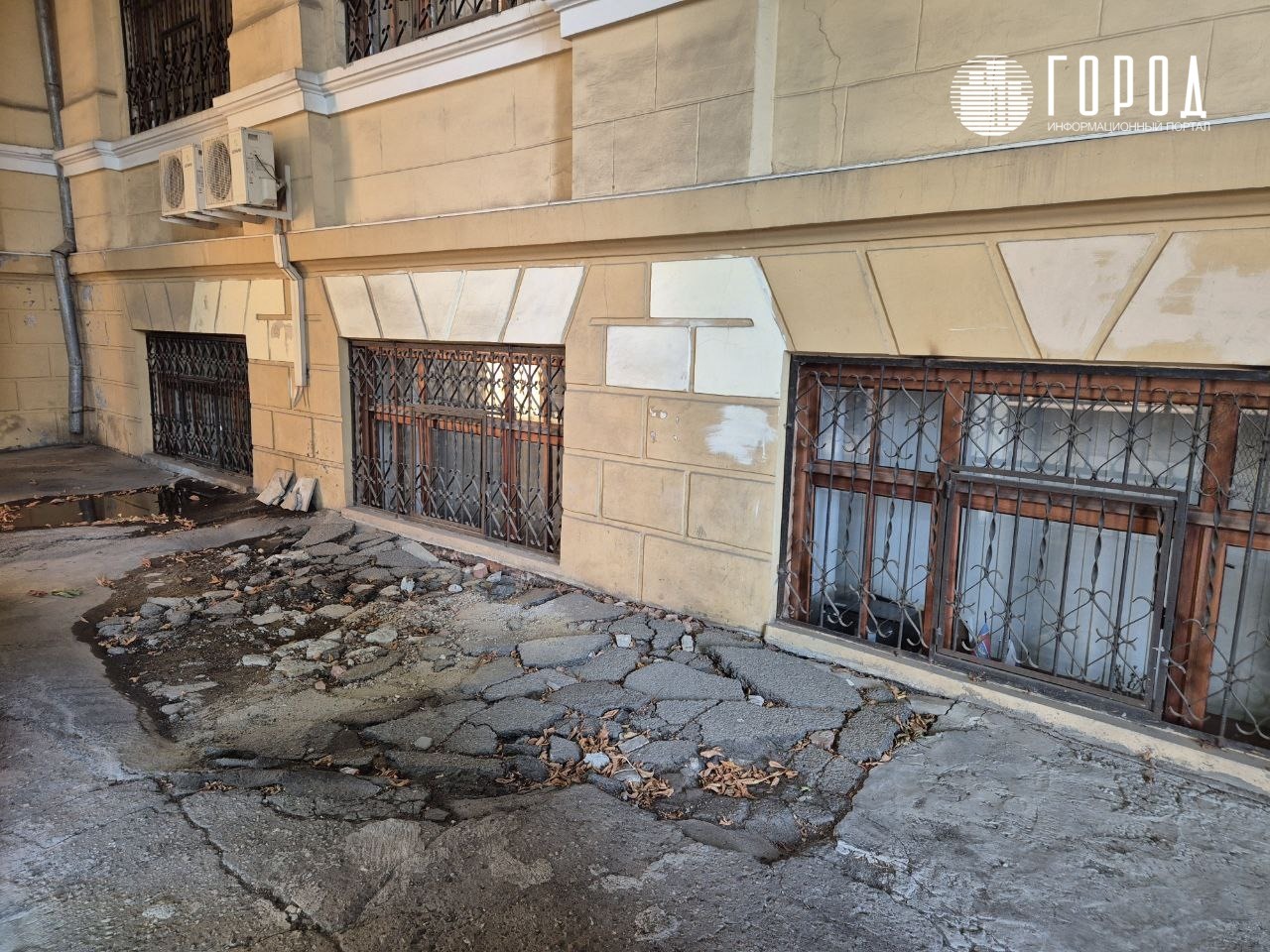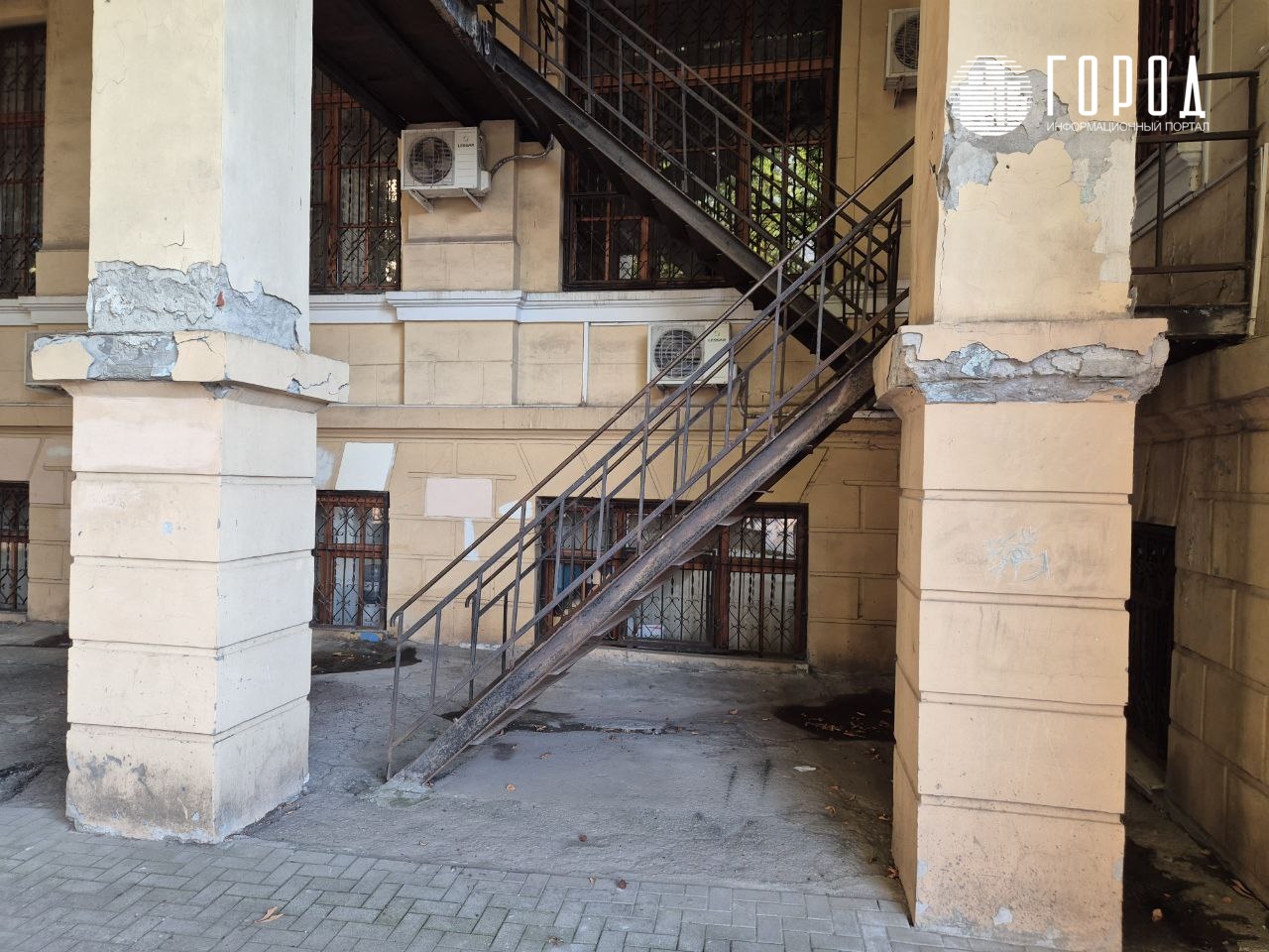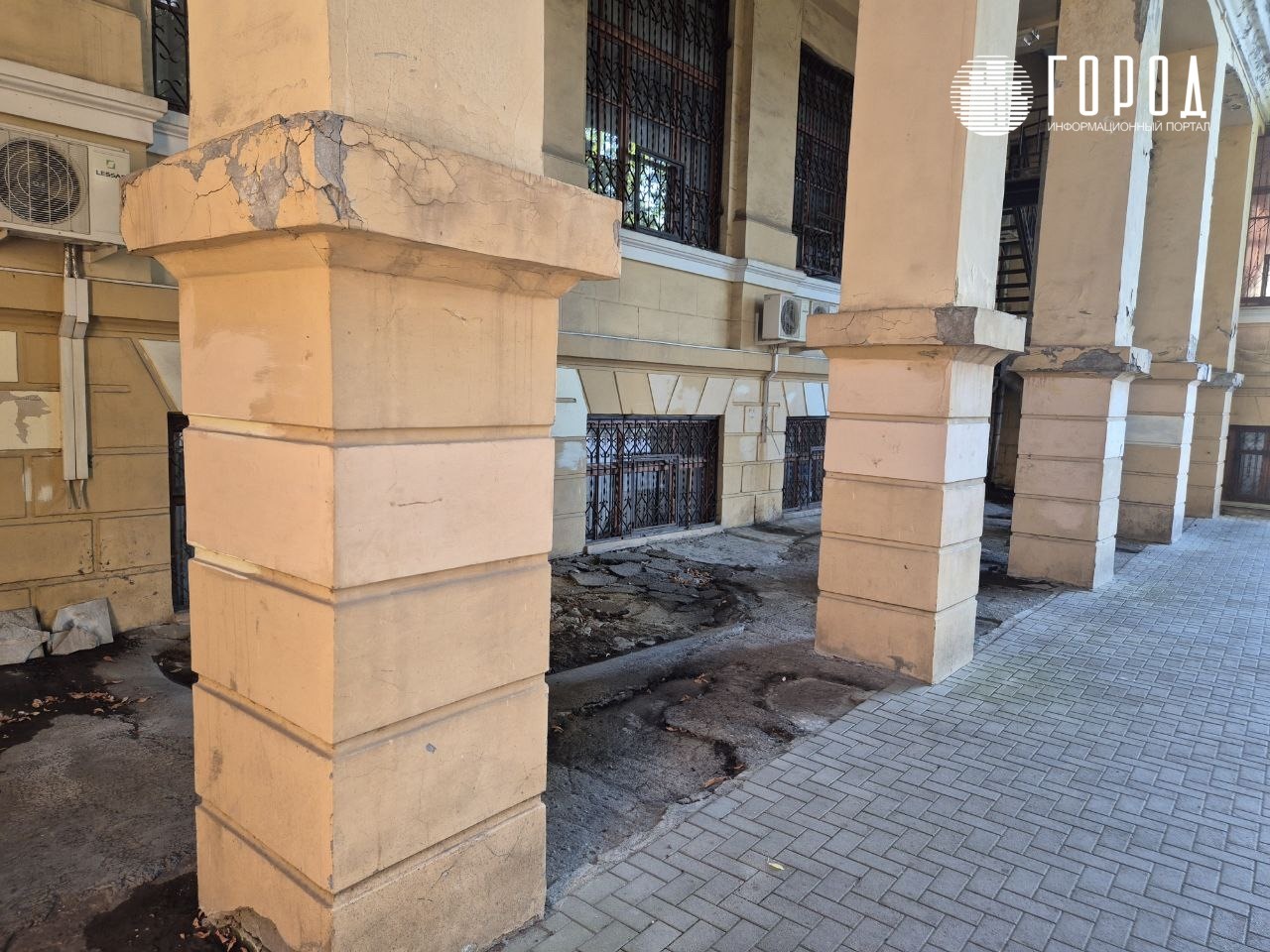 О том, что главной библиотеке Краснодарского края требуется ремонт, заметно со стороны невооружённым взглядом. Сколы, трещины, отвалившиеся части архитектурных элементов бросаются в глаза даже со стороны фасада. По боковым сторонам картина ещё более удручающая. Разбиты колонны, проваливается грунт у фундамента. Местами оголились красные кирпичи под несколькими слоями облицовки. С тыльной стороны библиотеки Пушкина в 1950-х годах к изначально историческому зданию пристроили книгохранилище. Часть стёкл выбита, а фасад также разрушается.
