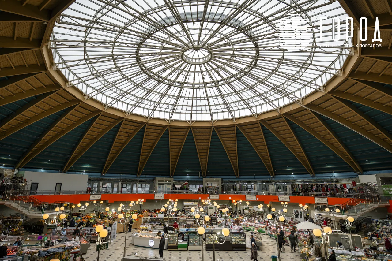 Рядом со стороны главного входа с улицы Октябрьской всё те же киоски с выпечкой и лотереями. Стройку затянули красивыми баннерами с картинками аппетитного мяса и свежей рыбы. По периметру основного круглого здания торгуют всем, что может пригодиться в быту, несколько десятков торговцев. Само круглое здание с улицы практически не изменилось. Может быть, только ржавчины на куполе стало больше, как и ям с трещинами на бетонном фасаде. Время берёт своё.