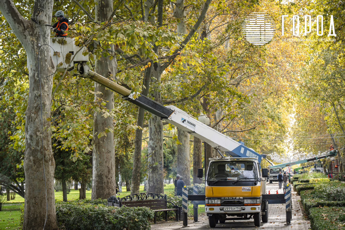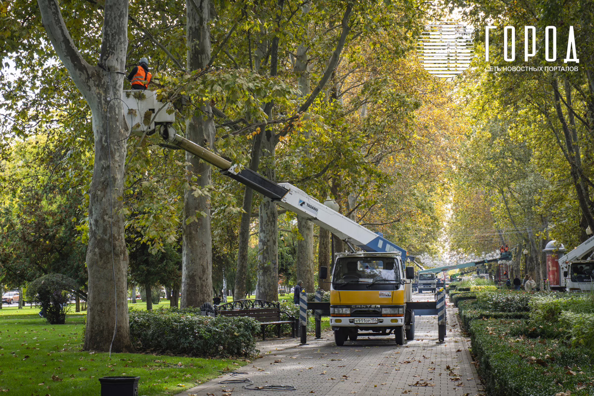 Гирлянды обматывают и вокруг деревьев. И хотя стоят предупреждающие знаки, краснодарцы спешат пройтись по уже украшенному отрезку улицы Красной. Пусть снежинки ещё и не сияют. Украшают улицу Красную не хаотично, а на основании специально разработанного плана. Даже обматывая деревья гирляндами, или подвешивая белые звёзды-снежинки, рабочие тщательно смотрят на листок бумаги. Где указано, где и что должно преобразить Краснодар.