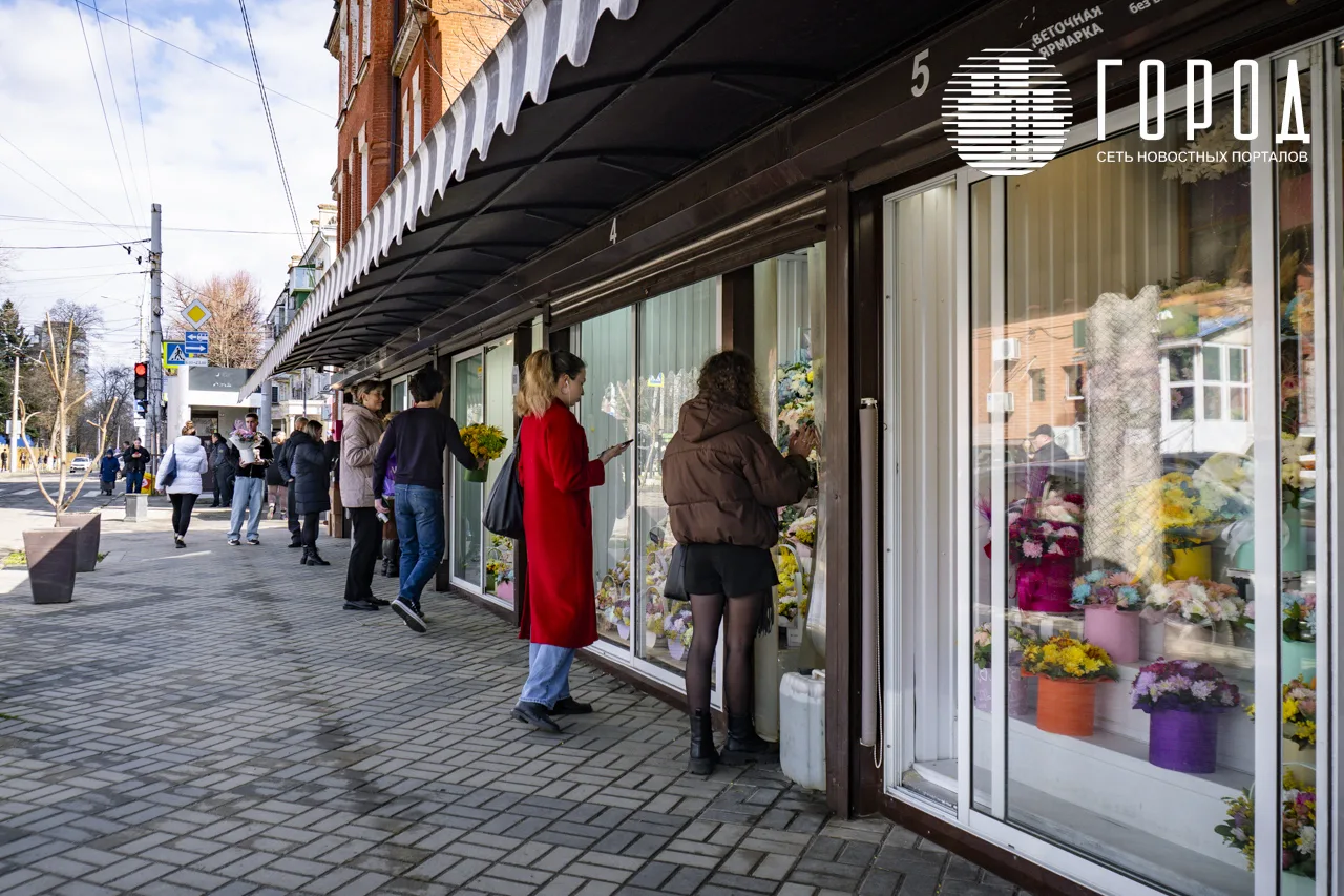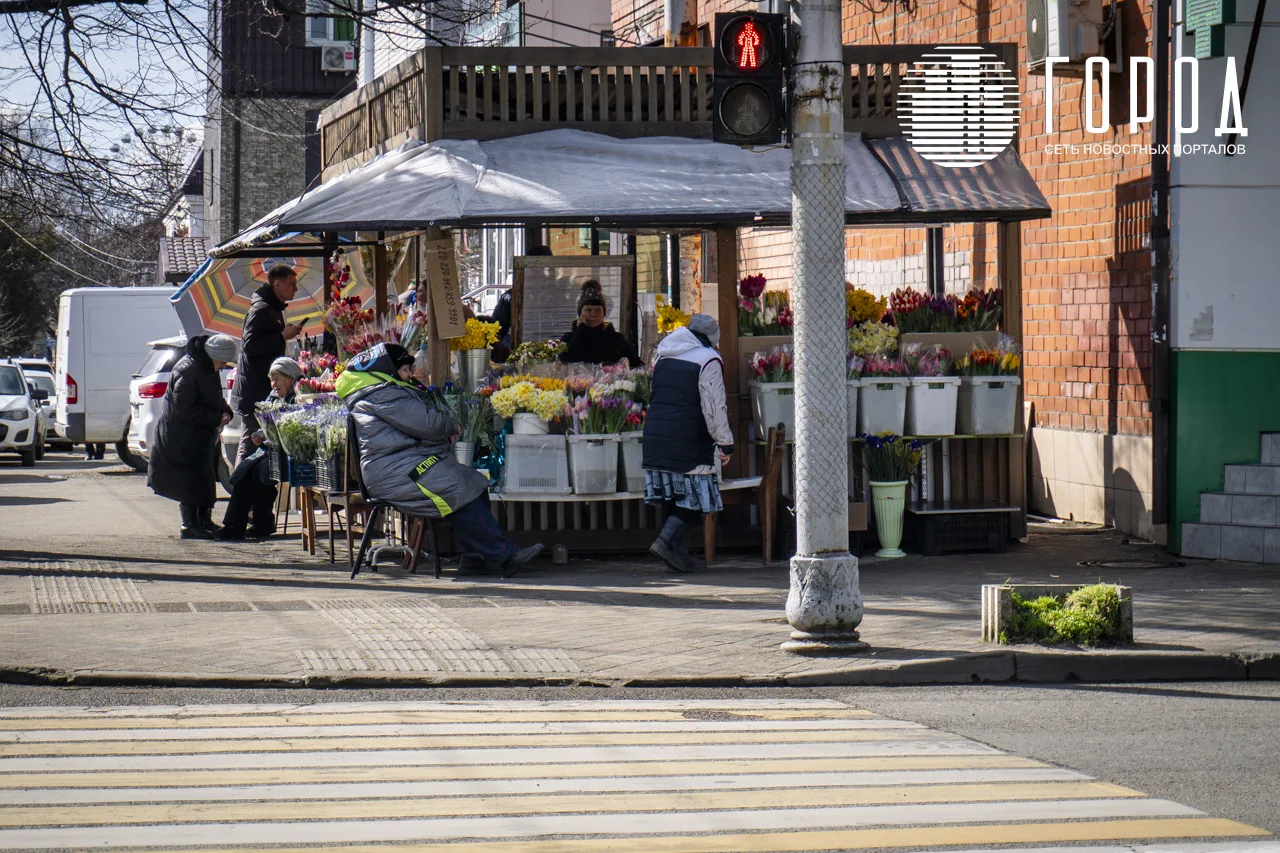 В центре Краснодара цветы можно было купить на перекрёстке улиц Мира и Коммунаров, а также на Кооперативном рынке. Кроме этого, в исторической части города повсюду вышли с цветами и мелкие предприниматели, которые перепрофилировали свой бизнес с продаж всяких мелочей под главный атрибут праздника.