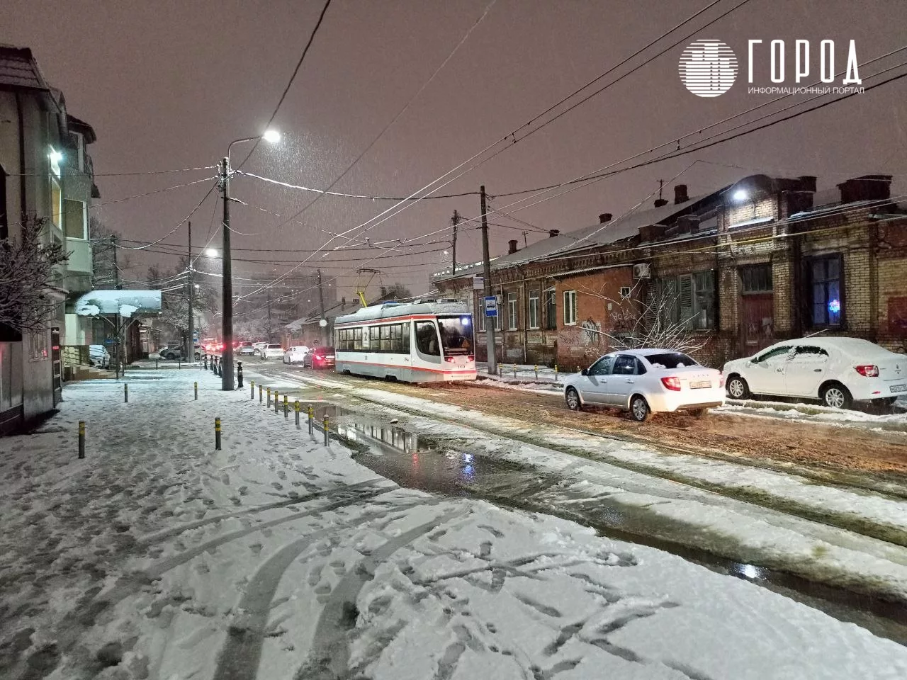 В Краснодаре так повелось, что любое яркое погодное явление приводит к каким-то проблемам. После любого заметного дождя – топит Музыкальный микрорайон. Во время жары – случаются аварии на электросетях. Обычный сильный ветер – массово рушатся деревья. Снегопад привёл сразу к нескольким бедам для горожан. Всё началось с пробок, которые усугубила частичная парализация работы трамваев. Так, трамвай №8 задымился у железнодорожного вокзала. Временно остановились в час пик трамваи №2 и №4. А у некоторых трамваев протекала крыша. Те, которые смогли всё-таки «выжить», ехали переполненными. Местами они становились в пробки вместе с автомобилями. Новогодний антураж создавал курсирующий украшенный гирляндами трамвай, сияющий на фоне свежего снега.