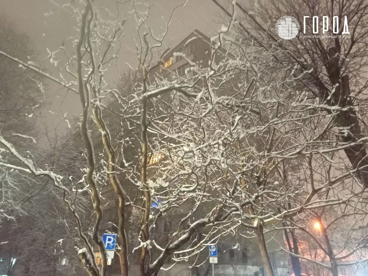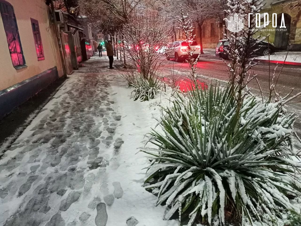 В Краснодар на Старый Новый год пришёл снегопад, создав настоящую зимнюю сказку