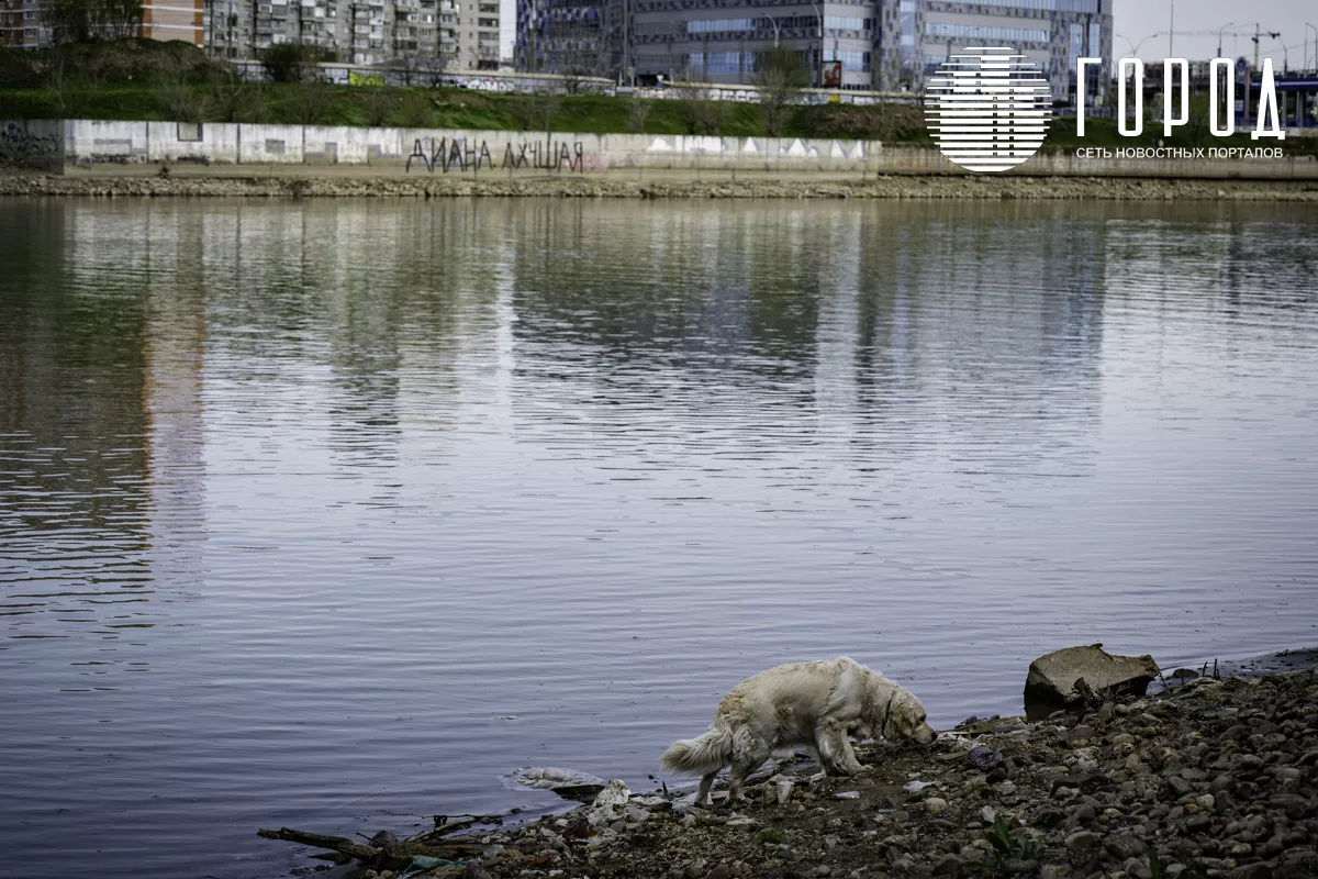 На протяжении примерно 200 метрах набережная всё та же – огромная свалка. Плюс проснулись змеи, которых на берегу очень много. Затем начинается бетонная часть набережной. Наверху она достаточно широкая. По ней гуляют счастливые обладатели дорогих особняков, порой шикарнее, чем на местной «Рублёвке», посмотреть на которую можно в отдельном материале krd.gorod.space.