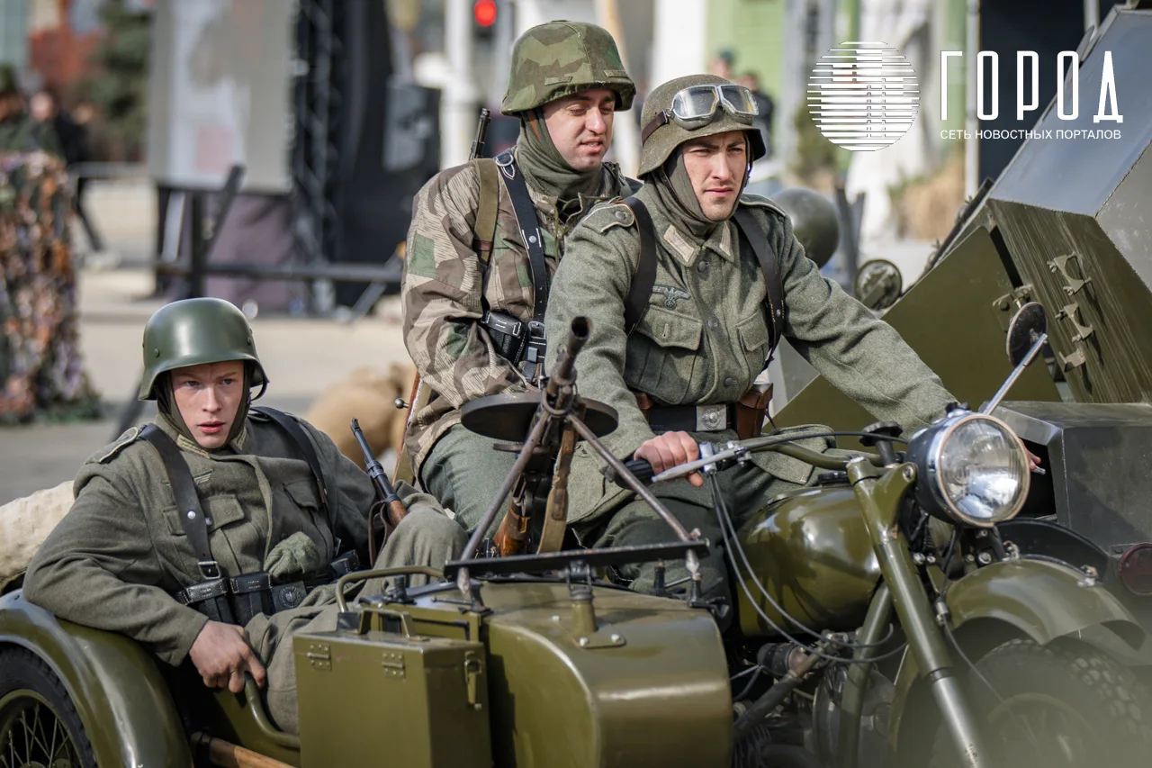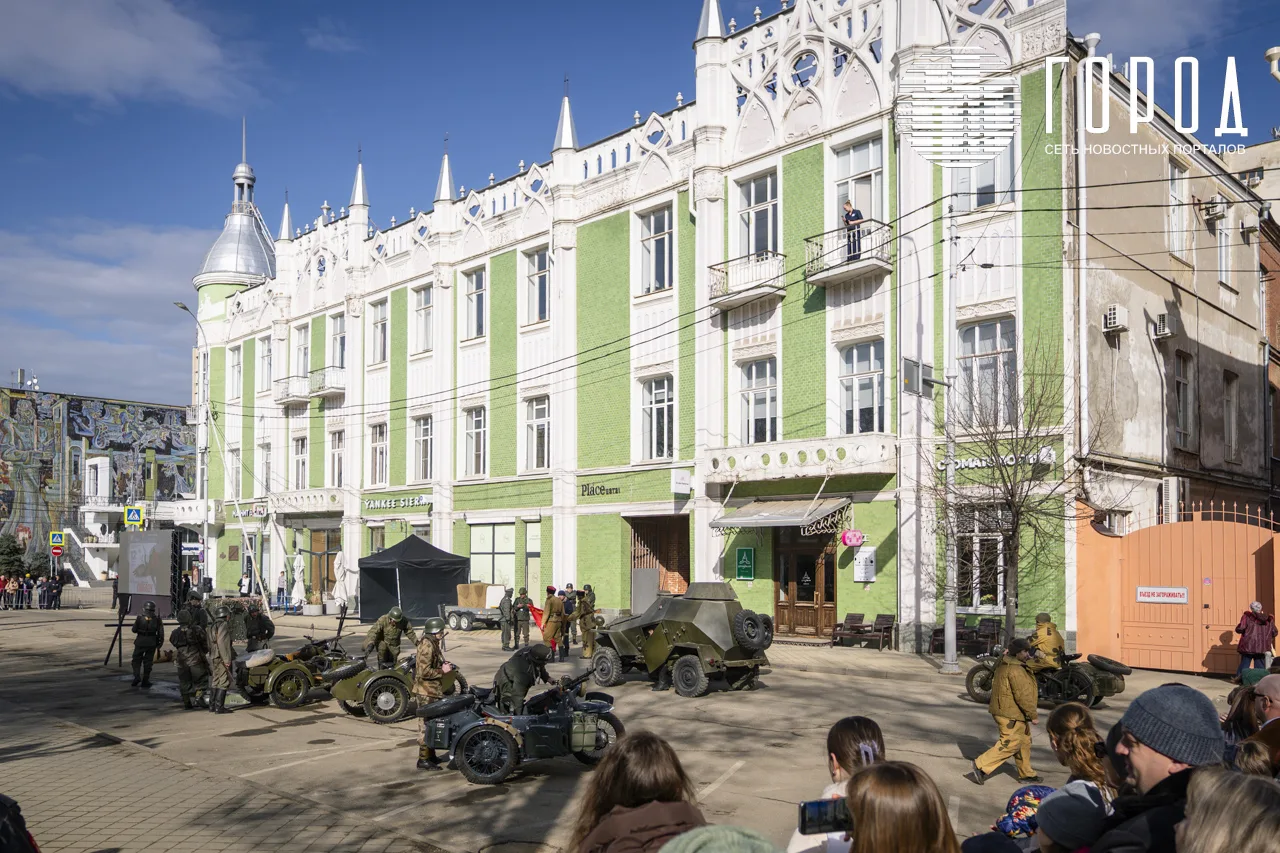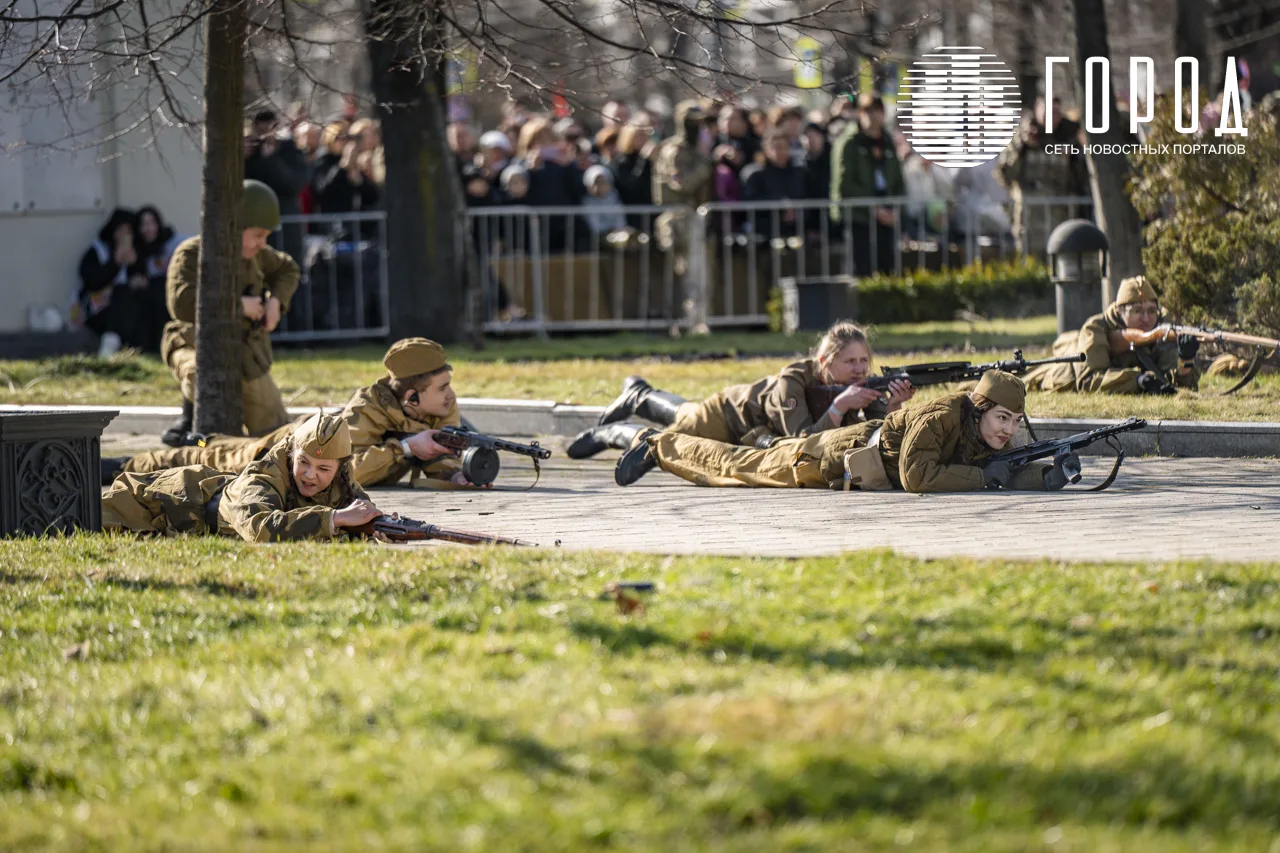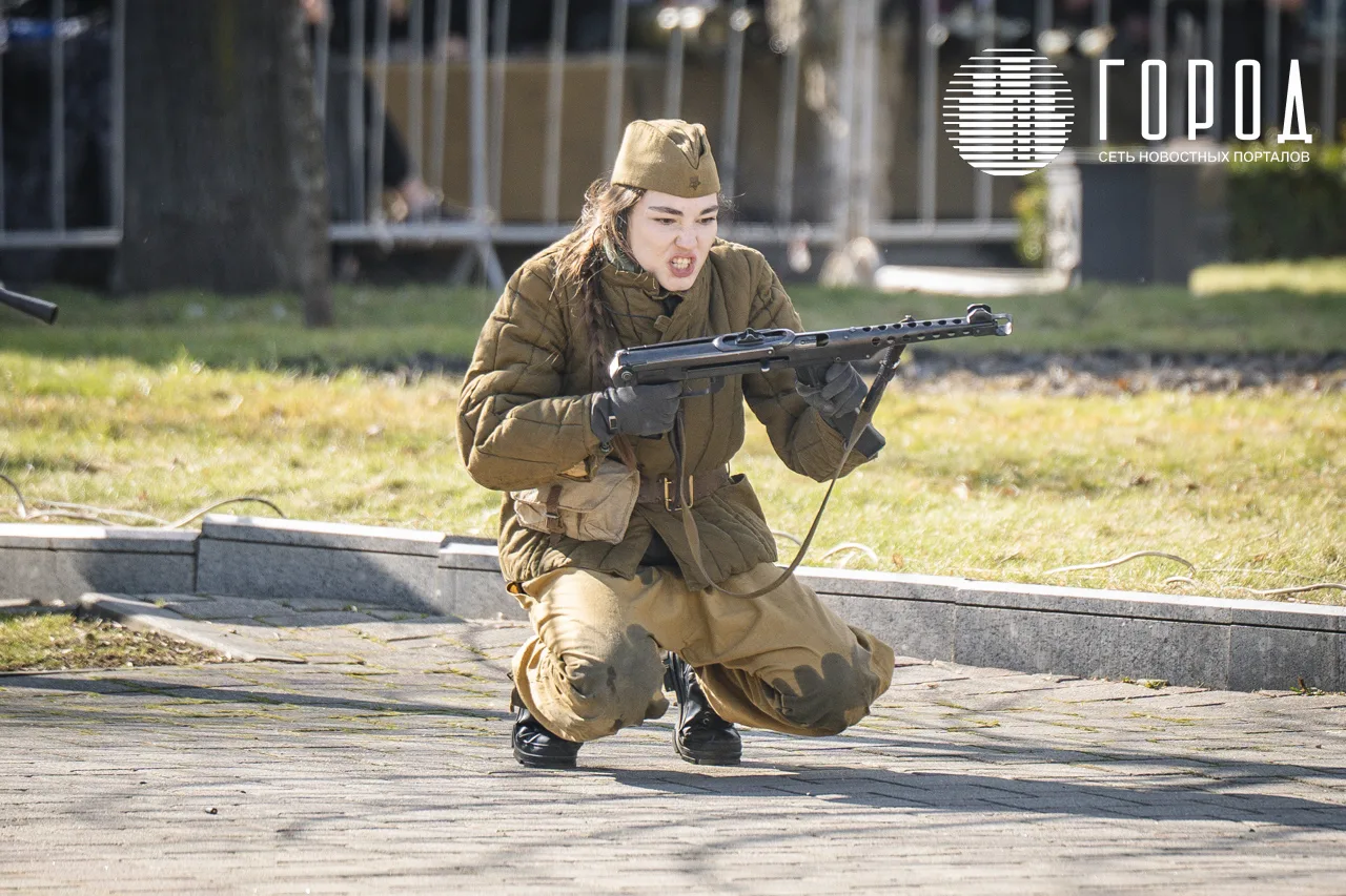 В рамках празднования годовщины освобождения Краснодара от оккупантов у Вечного огня и воинских памятников не выставили почётный караул и Пост №1, а напротив краевой администрации провели реконструкцию исторических событий.