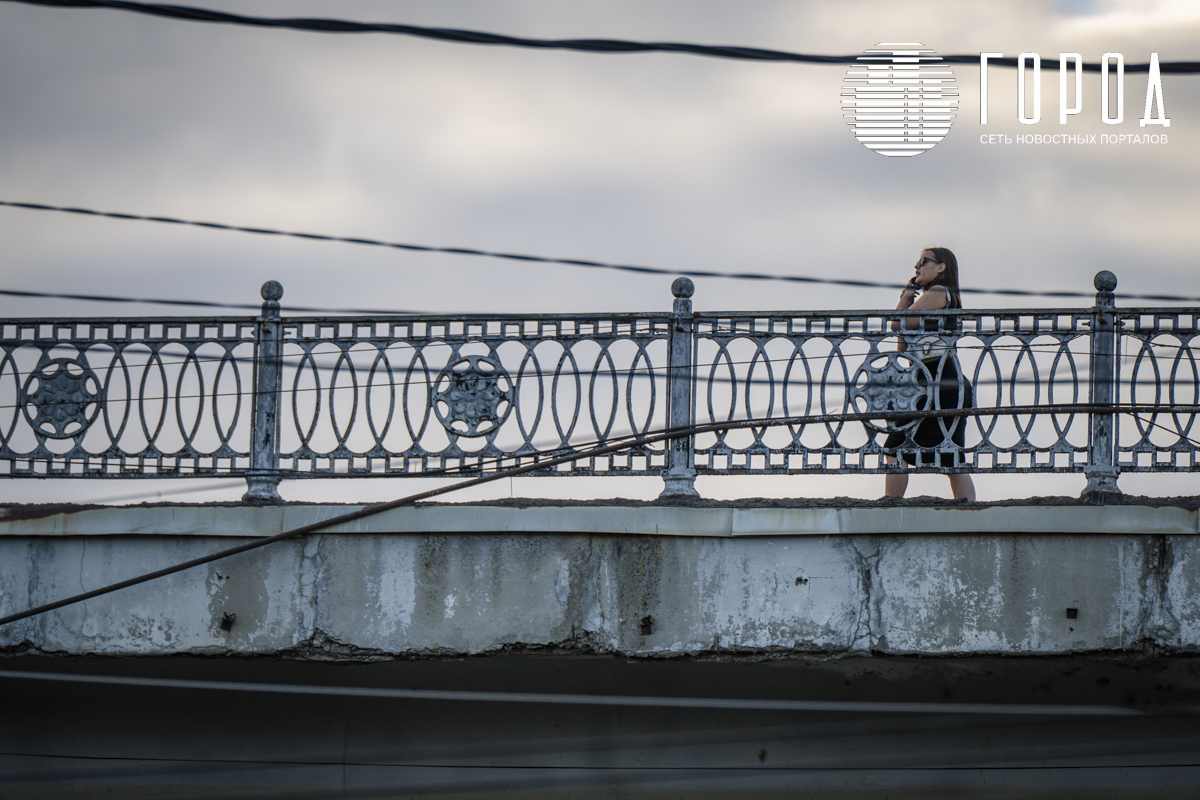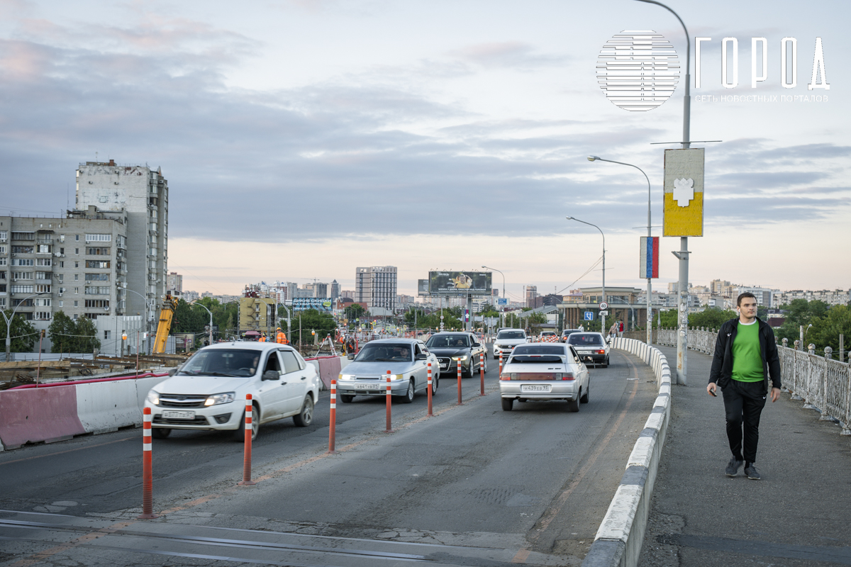 Рядом с мостом по улице Калинина городские службы латают дорогу и делают новые тротуары. Заметен большой поток людей на пешеходной дорожке Тургеневского моста. Пешеходам сильно мешают многочисленные горожане на велосипедах, электросамокатах и других средствах индивидуальной мобильности. Почему-то ездить по проезжей части они не хотят, хотя даже на ограниченной до двух полос автодороге места им предостаточно.