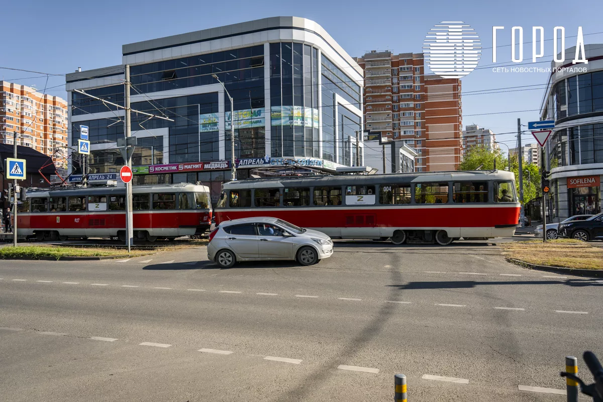 Осложняют ситуацию на улице Калинина и трамвайные пути, которые водителям приходится преодолевать при желании свернуть на нужную улицу или развернуться. Из-за плотного движения и большого количества авто повернуть стало проблемно. Машины ждут своей очереди прямо на путях, а водители трамваев вынуждены ждать, когда появится возможность для проезда. Хотя по всем правилам дорожного движения трамваи следует пропускать. Это приводит к пробкам и у трамваев. К лицам озлобленных водителей авто добавляют раздражительные лики стоящих в пробке пассажиров трамваев.
