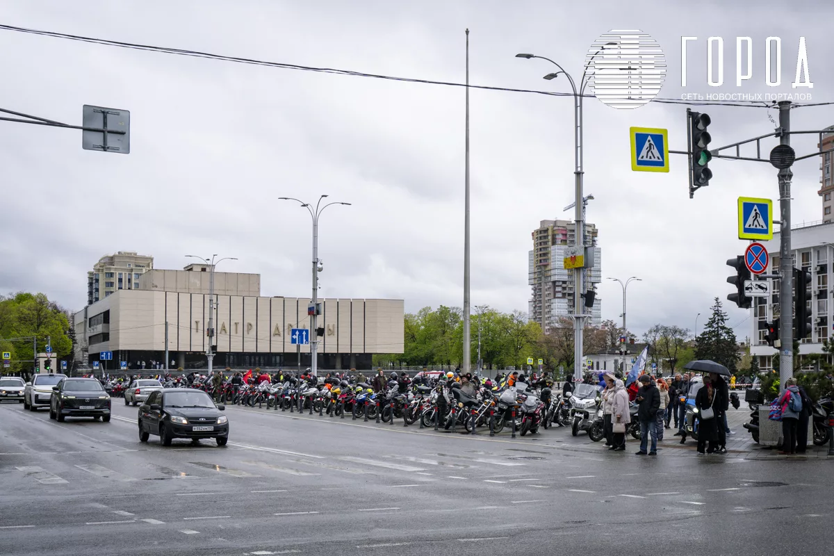 По задумке организаторов, мотоциклисты собрались на большой парковке у «Окей» на улице Мачуги к часу дня. Кто-то в паблике мотоциклистов сделал пессимистичный прогноз, что мотосезон-2025 откроют всего 30 человек. Но, несмотря на погоду, в заезде приняли участие, по наблюдению фотографа «Города», от 200 до 300 человек. Колонна в сопровождении машин полиции и МЧС за полчаса проехала от улицы Мачуги до Главной городской площади перед мэрией Краснодара. Заезд стартовал со с легендарного «Поехали!».