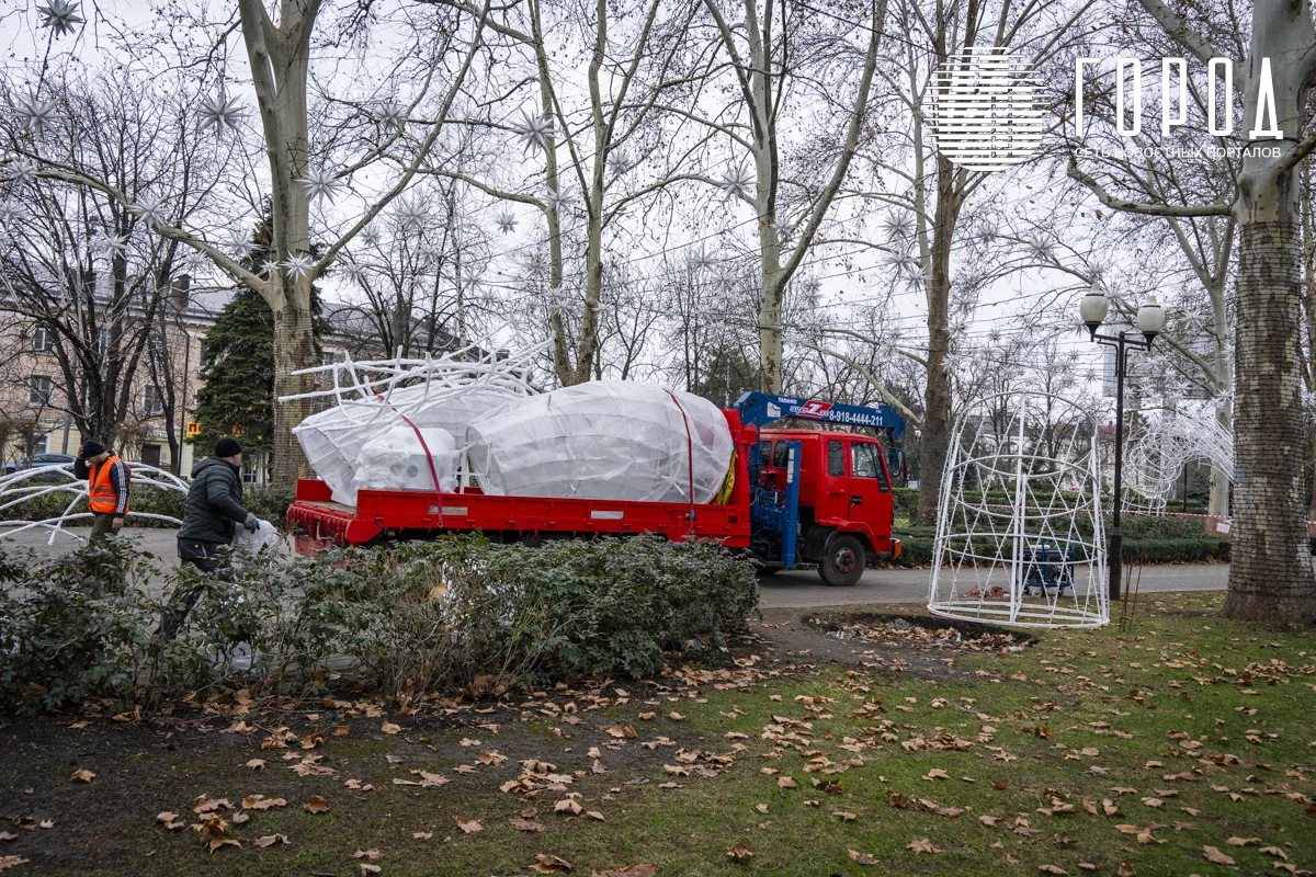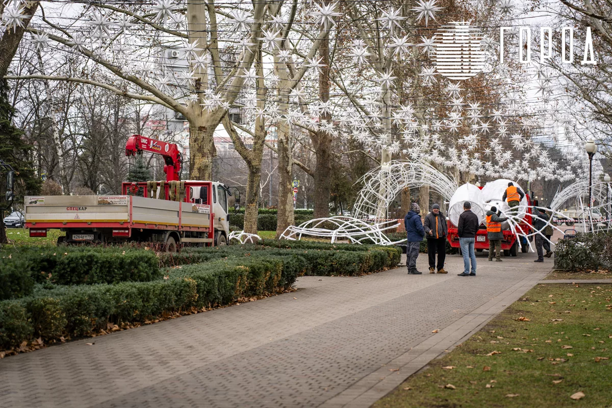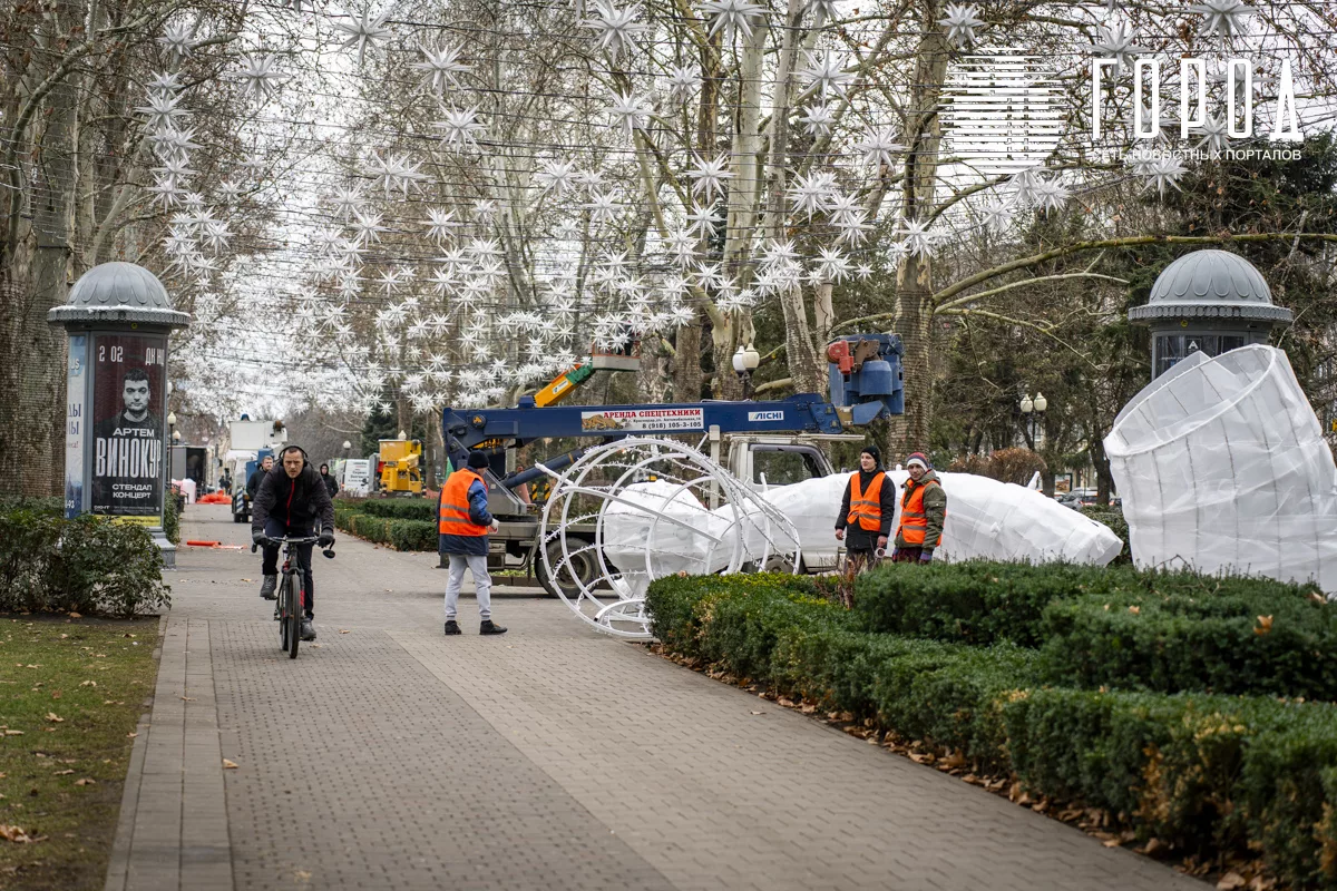 На аллее со стороны улицы Гаврилова к сегодняшнему обеду остались всего две арки. До конца дня вывезли и их. Добродушные и весёлые рабочие поделились, что демонтаж займёт намного меньше времени, чем потребовалось на украшение улицы Красной. Они планируют вывезти все новогодние украшения Галицкого 10-15 февраля. Сам демонтаж стартовал 15 января, то есть два дня назад. Специалисты уже частично разобрали аллею из звёздочек-снежинок над головами прогуливающихся жителей. Правда, убирать их ещё очень много. Деревья до сих пор обвиты тысячами метров ярких гирлянд. До них руки пока не дошли. Постоянно с улицы Красной выезжают грузовики, увозящие арки и гирлянды с главной улицы Краснодара. Вернут ли их накануне 2026-го года? Рабочие не знают.