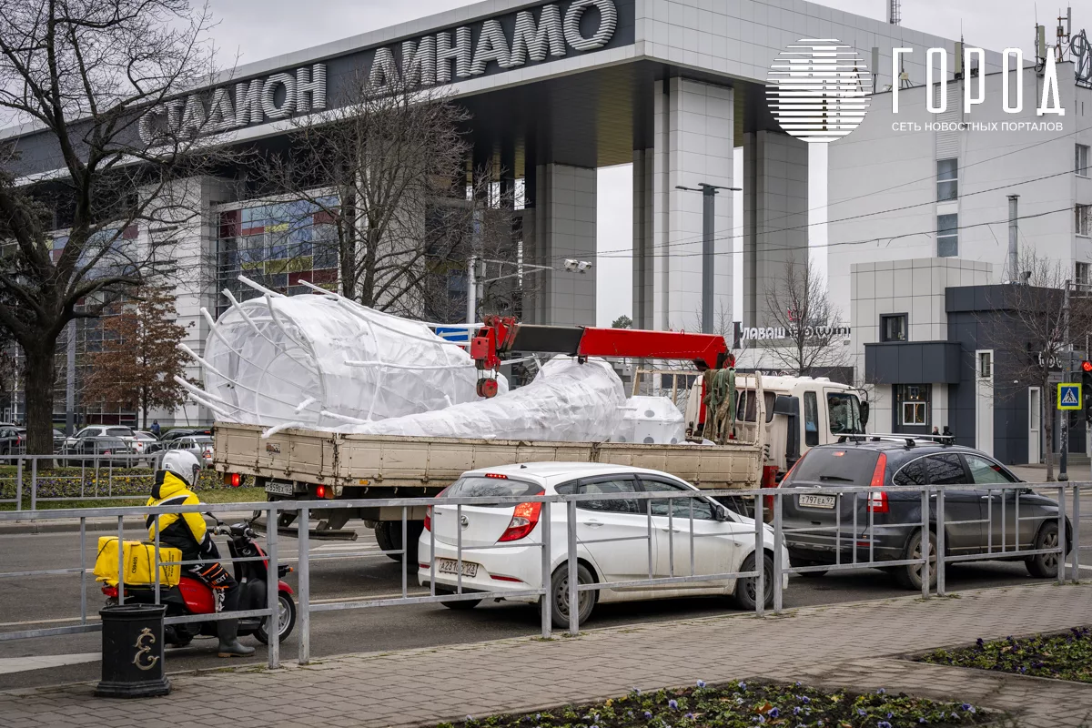 В Краснодаре 17 января полным ходом идёт демонтаж арок и инсталляций на улице Красной. Новогодние украшения Галицкого вывозят грузовиками.