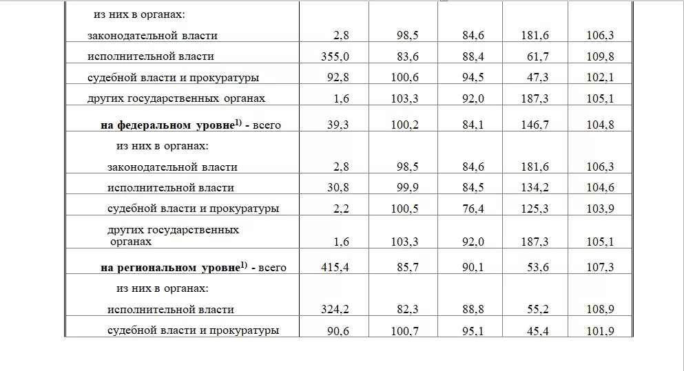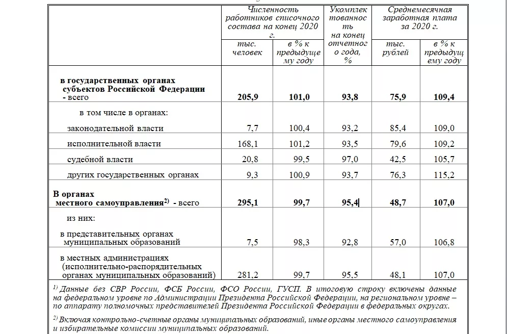 Когда правительство в 2019 году объявило о сокращении сотрудников, в 2020 году реальное число сотрудников федеральных органов выросло с 499596 до 509393 человек, на 2%. Хотя с 2020 года и наблюдается после резкого скачка штатов сокращение работников федеральных госорганов. «Оптимизировали» почти 20 000 сотрудников.