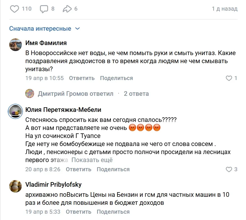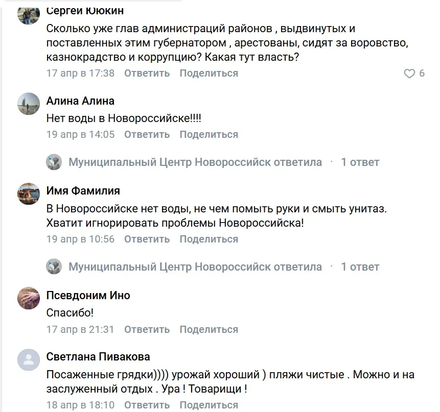 При этом нет никаких оснований не доверять администрации Краснодарского края по поводу проблем с ботами и нарушениями законодательства РФ пользователями. С ними сталкиваются абсолютно все администраторы пабликов в «Телеграм». Да и судя по открытым комментариям «ВКонтакте» на странице Вениамина Кондратьева, администраторы негативные комментарии если и чистят, то не быстро.