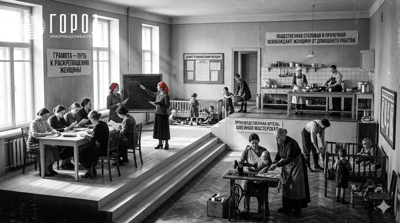 При этом идеологами женского движения выступали в основном убежденные марксистки: Александра Коллонтай, Надежда Крупская, Инесса Арманд, Людмила Сталь. Новая пропаганда рисовала образ сильной, устремленной в будущее труженицы, которая активно вовлекается в общественную жизнь и осваивает «мужское» производство: только так женщины могли достичь равноправия и «освободиться от кухонного рабства».