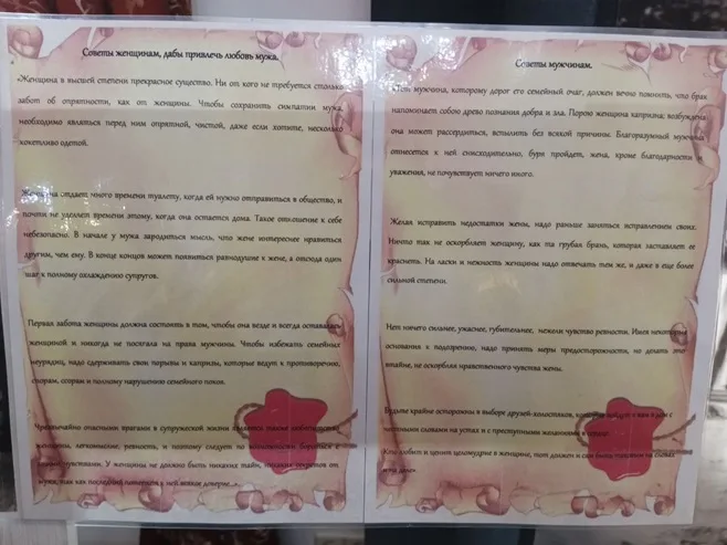 Однако там же признавалось «Первая забота женщины должна состоять в том, чтобы она везде и всегда оставалась женщиной и никогда не посягала на права мужчин». Особенно актуально (и даже на сегодняшний день!) звучит совет: «Чтобы избежать семейных неурядиц, надо сдерживать свои порывы и капризы, которые ведут к противоречию, спорам, ссорам и полному нарушению семейного покоя». Вот так.