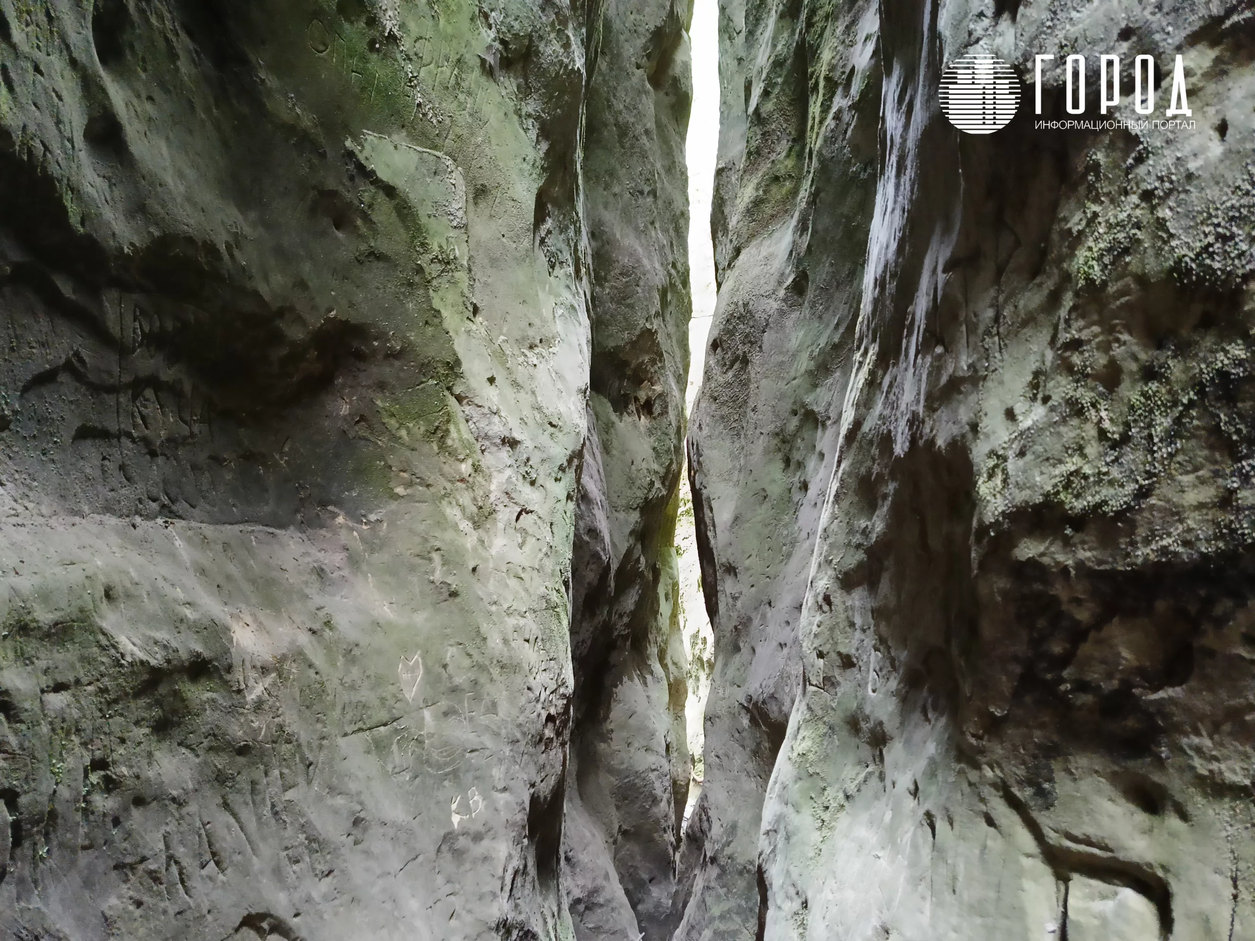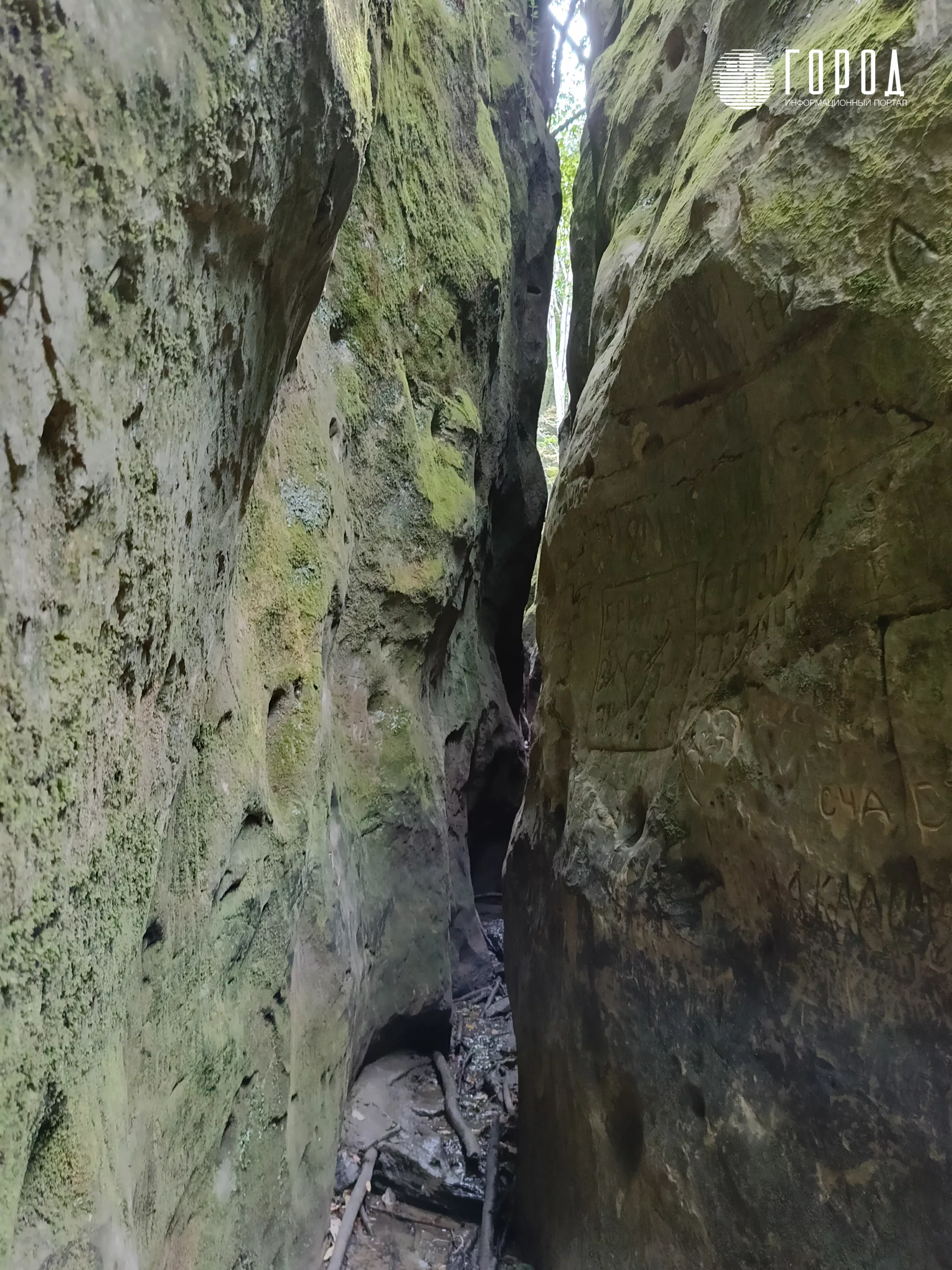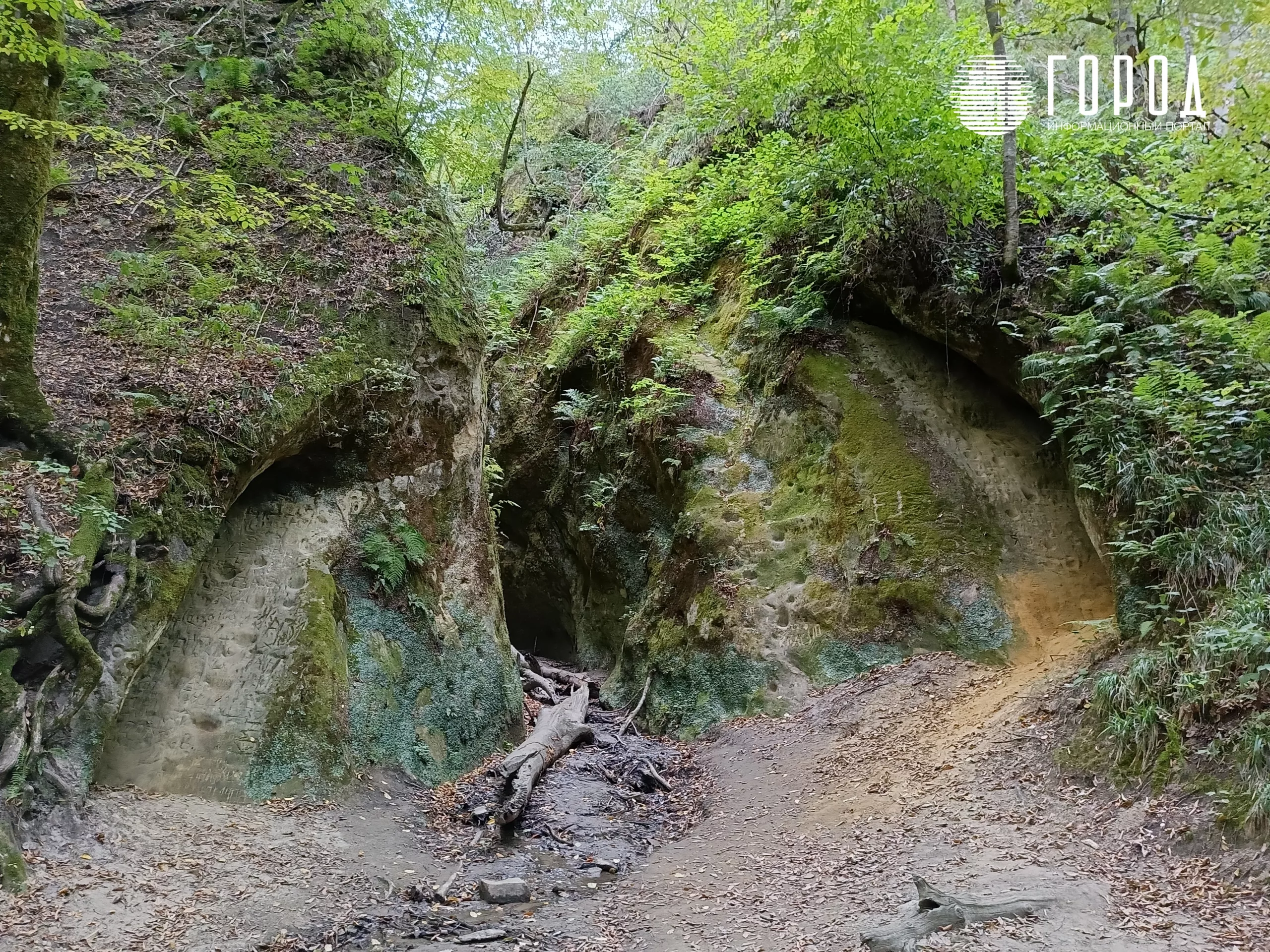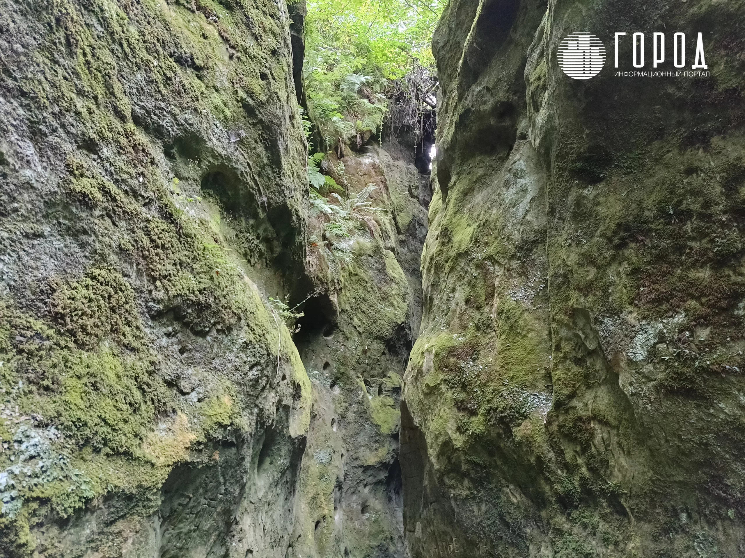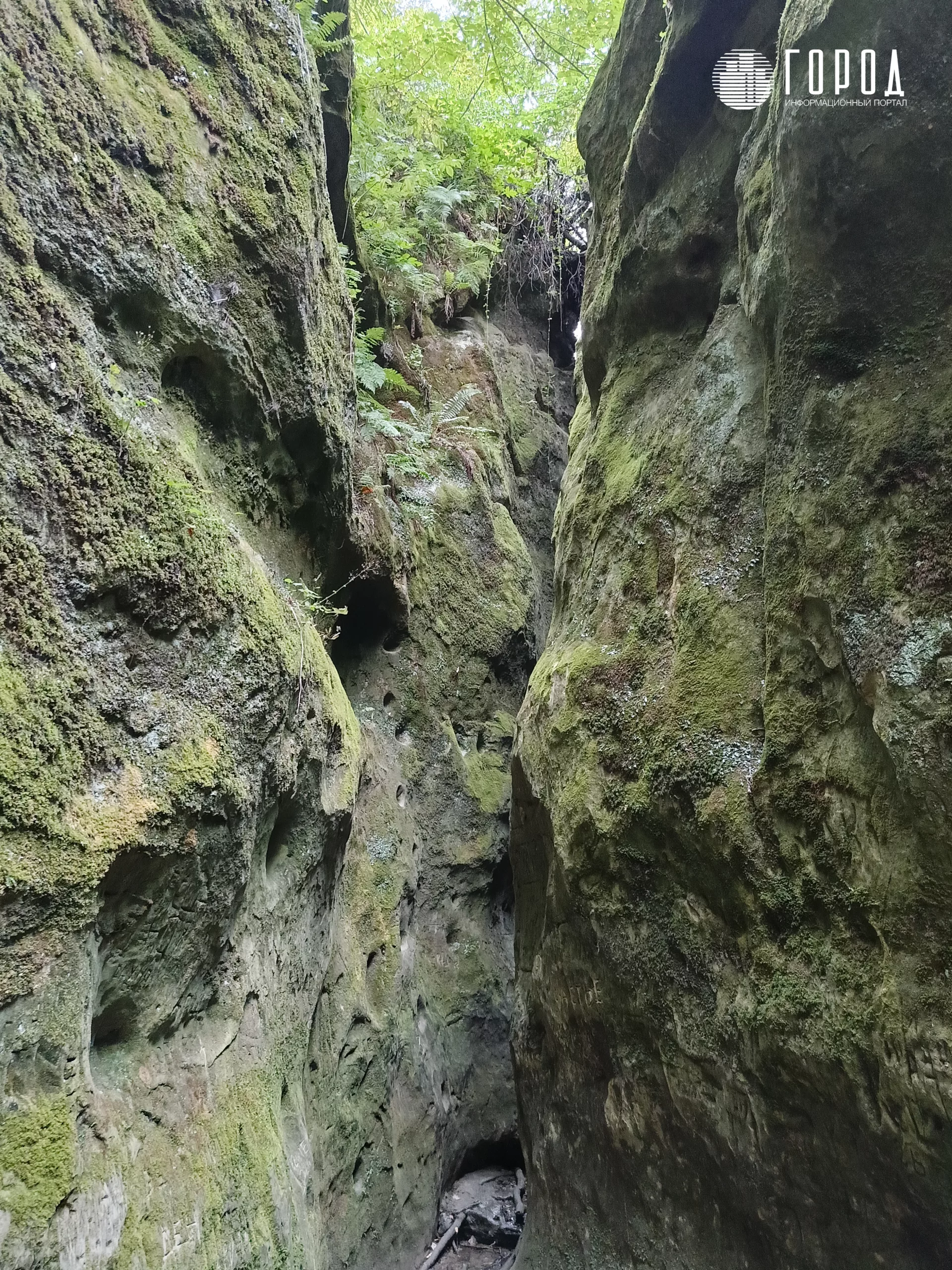 В каком-то отзыве читал, что недалеко от Медвежьих ворот существуют пещеры, но на их поиски отправиться не удалось. Уже в пути пожалел, что выбрал лёгкие промокаемые кроссовки вместо водонепроницаемой обуви. Без неё лазить по местным скалам проблематично.