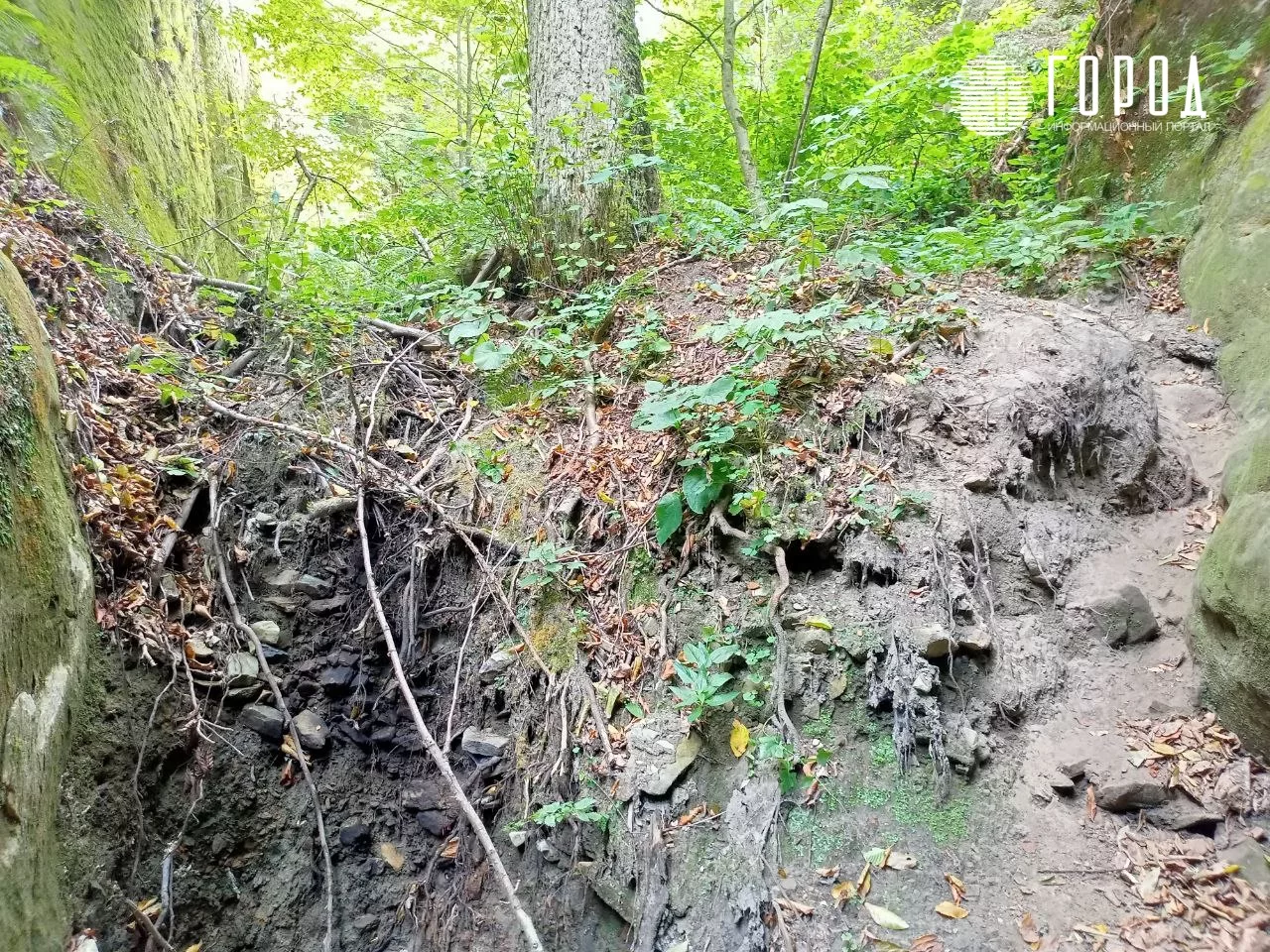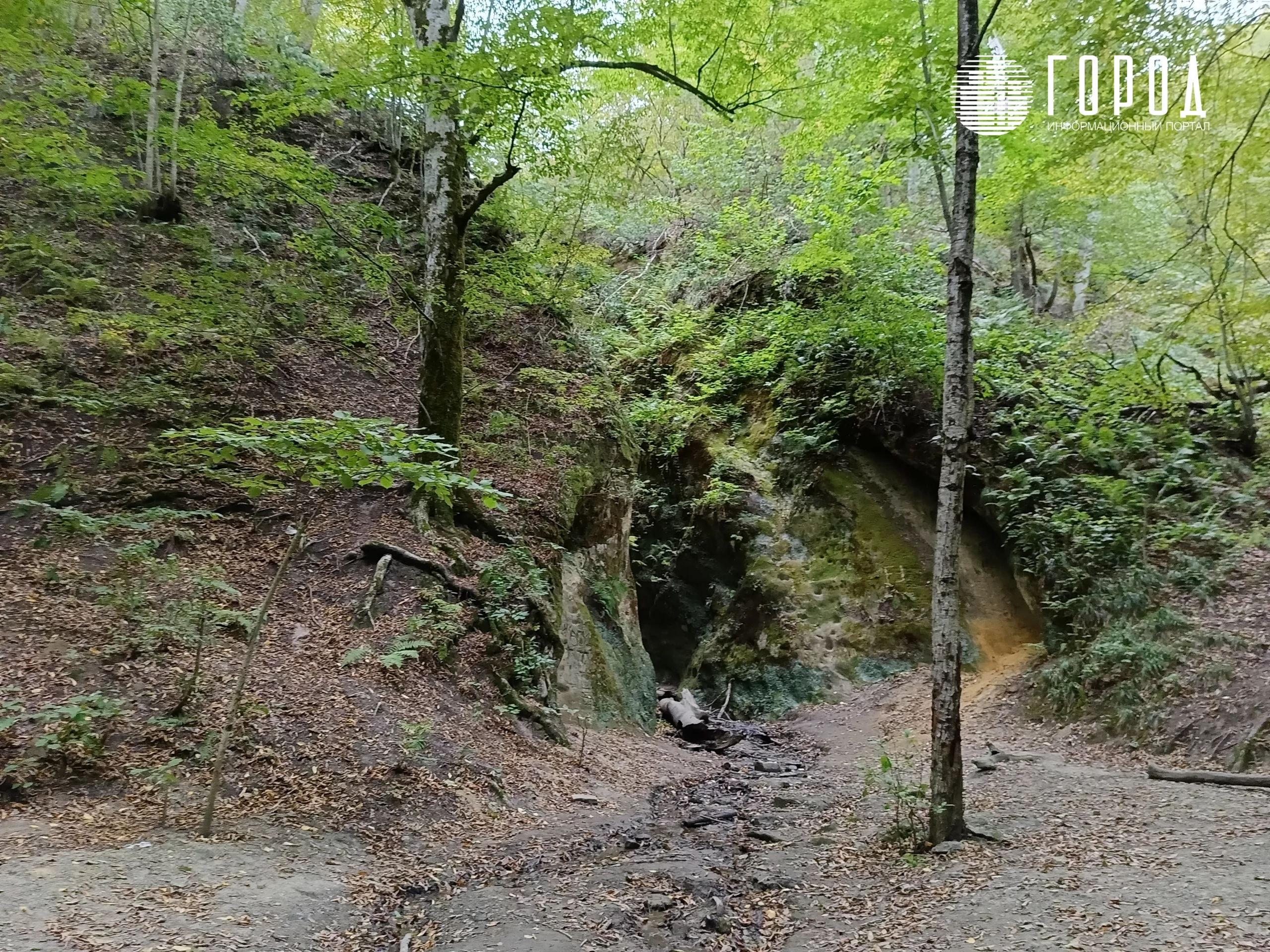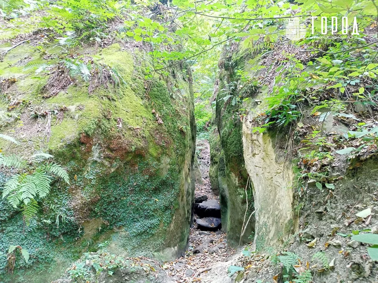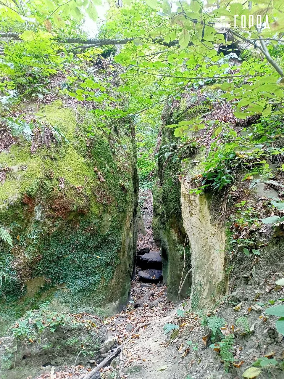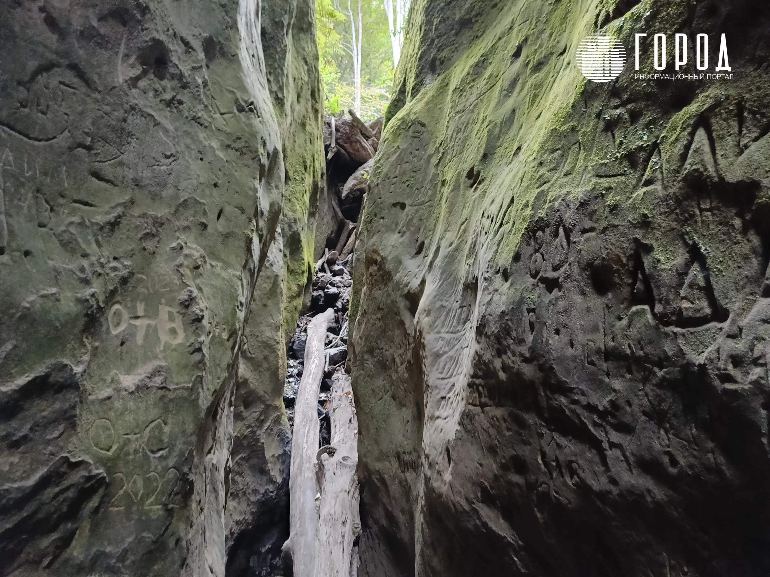 После прохода через Медвежьи ворота придётся подняться наверх. Слева ещё одна скала. Вдоль неё течёт ручеёк, радуя своим урчанием. И тишина… Чуть выше вдоль скала есть ещё одни ворота. Но они завалены пнями и деревьями. Они уже почернели. Через них и пробивается ручеек, падая с высоты нескольких метров.