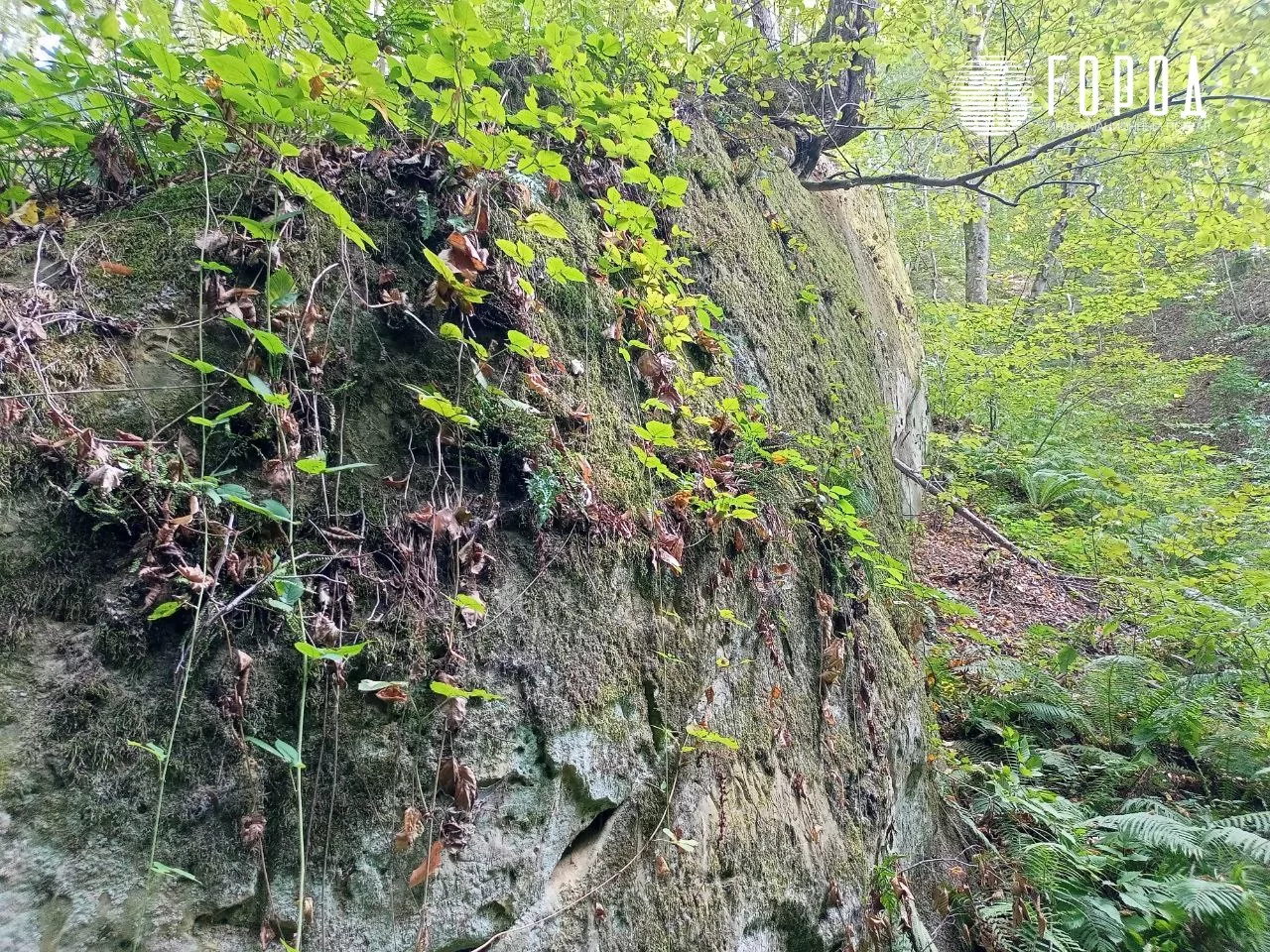Место очень живописное. Так и хочется узнать, откуда среди обычного леса взялись такие скалы…